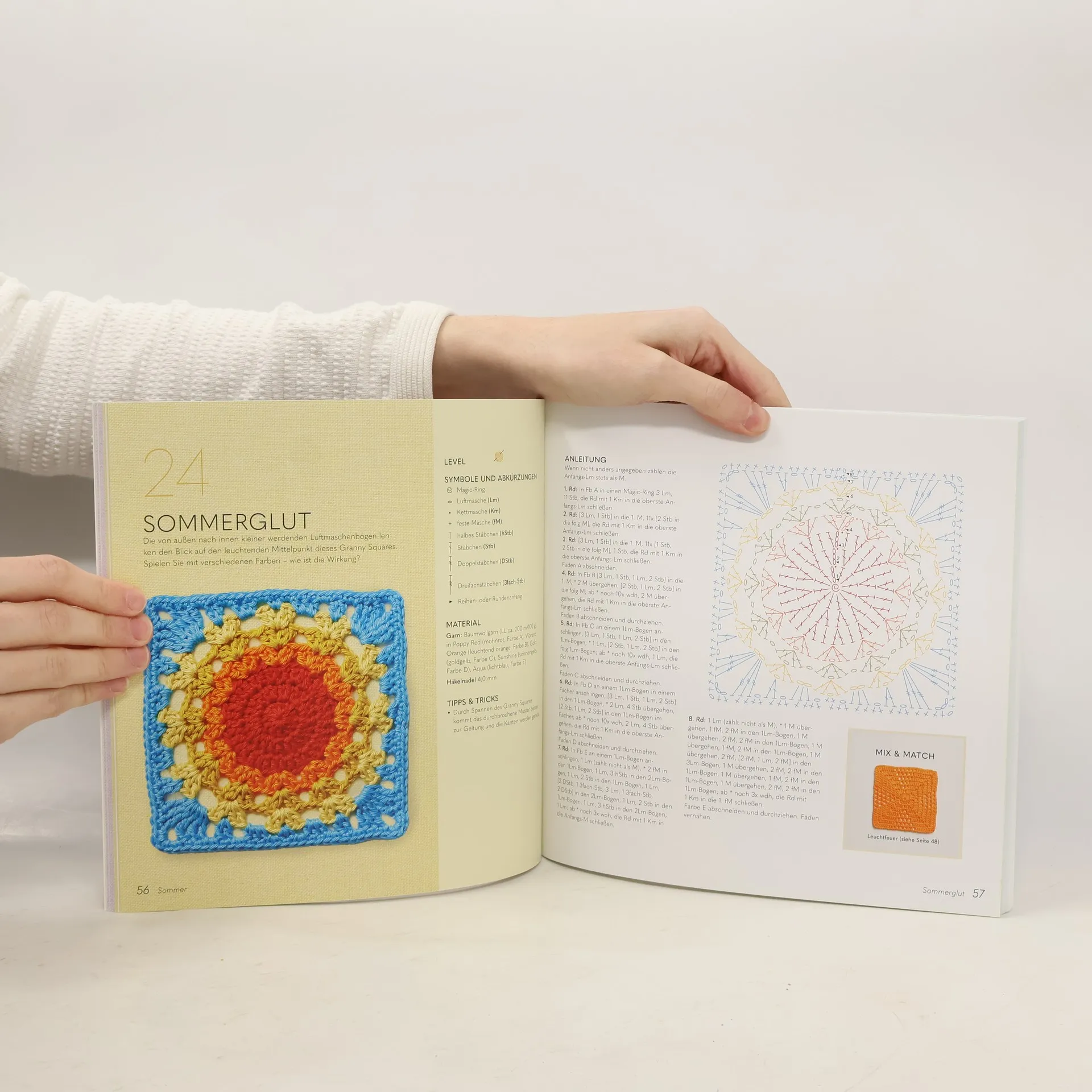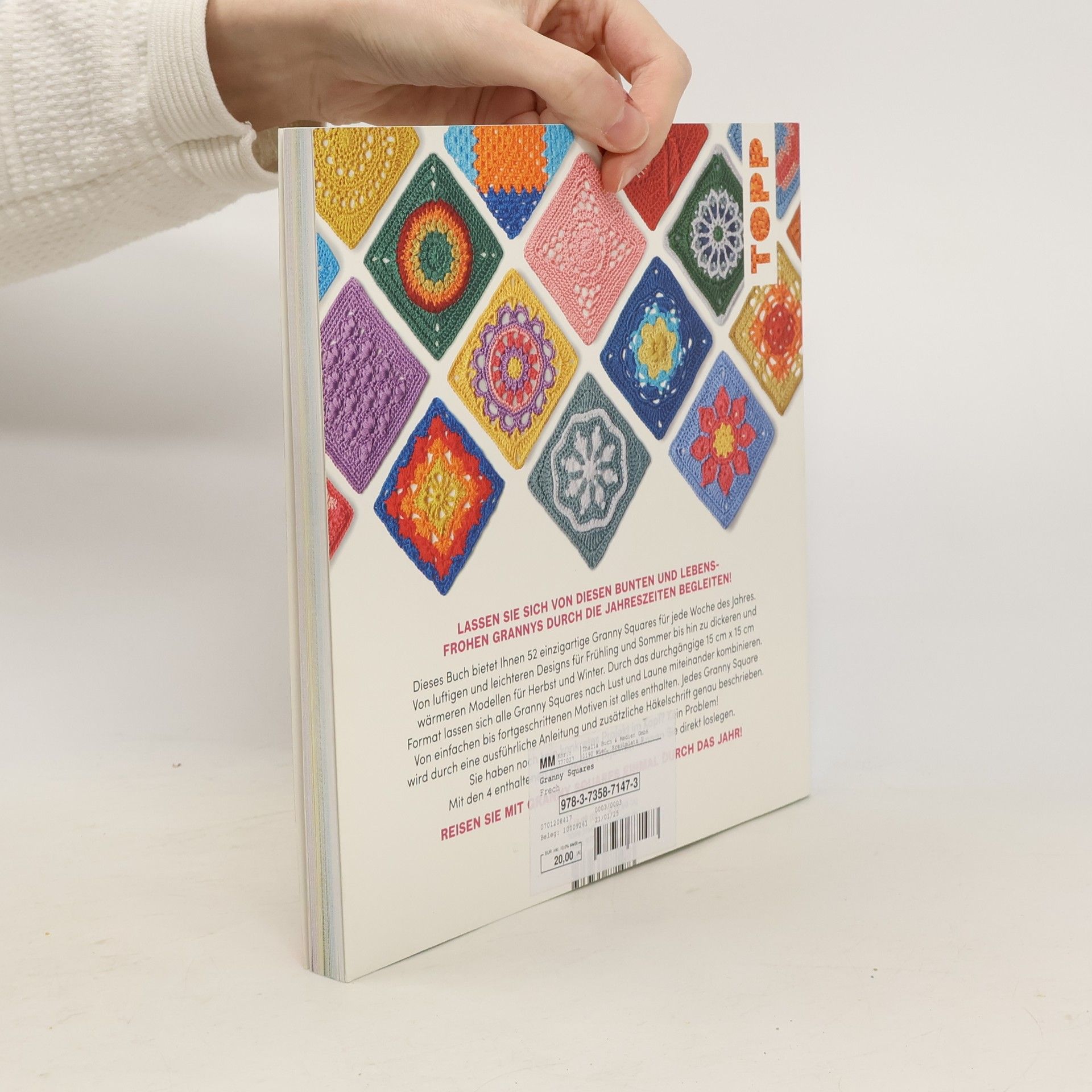 Reisen Sie mit Granny Squares einmal durch das Jahr! Die australische Designerin Kylie Moleta hat sich von den vier Jahreszeiten inspirieren lassen und 52 einzigartige Granny Squares kreiert: von pastelligen Blütenträumen über kräftige Sonnenstrahlen und bunte Laubfärbung bis hin zu filigranen Schneeflocken. Diese Mustersammlung bietet Ihnen mit zeitlosen, geometrischen Mustern sowie modernen 3D-Designs eine große Vielfalt an neuen Häkelquadraten - perfekt für die Verwertung von Garnresten! Die Modelle reichen dabei von luftig und leicht für die warmen Jahreszeiten bis hin zu dickeren und wärmeren Designs für die zweite Jahreshälfte und das beste daran: dank des durchgängigen 15 x 15 cm Formats können Sie alle Quadrate nach Lust und Laune miteinander kombinieren ! Das erwartet Sie: 52 Designs für jede Woche des Jahres verscheidene Schwierigkeitsstufen Mix & Match: alle Häkelquadrate lassen sich miteinander kombinieren 4 saisonale Projekte zum direkt Loslegen umfangreicher Grundlagenteil ausführliche Schritt-für-Schritt-Anleitungen und Häkelschriften für Anfänger:innen und Fortgeschrittene