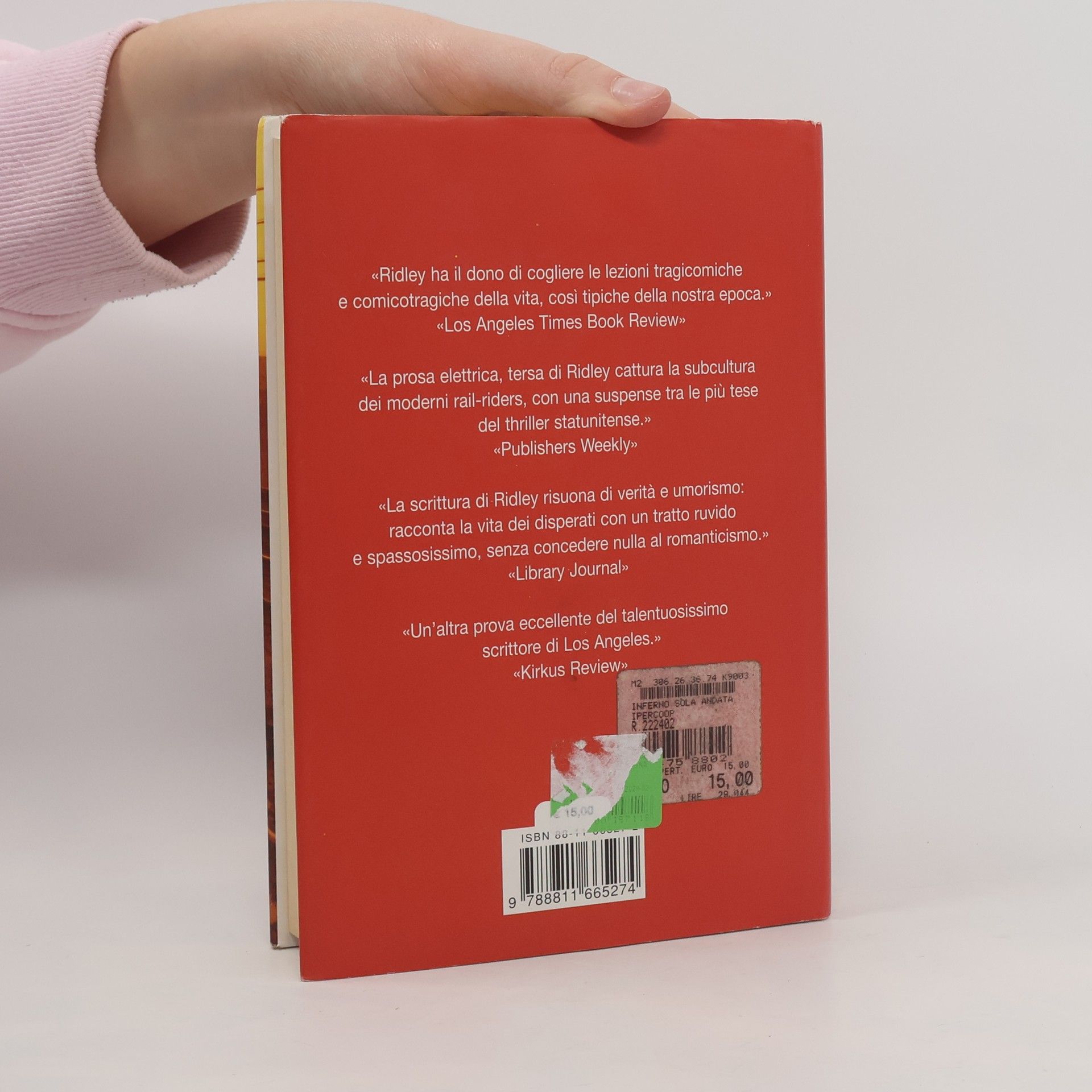 Charles Harmon ha mollato tutto – il lavoro di avvocato, la casa, la famiglia – per diventare un hobo, uno di quei vagabondi che attraversano gli Stati Uniti sui treni merci della high line. Ora lo conoscono tutti come Charlie Negro Cervellone. Ormai è padrone di tutti i trucchi che servono per sopravvivere dove non esistono né legge né morale. Sa come destreggiarsi tra bande rivali, trafficanti di droga e criminali di ogni genere. Deve trovare Corina, la nipote del suo amico e maestro Walt: a diciassette anni, è scomparsa senza lasciare tracce. Come molte sue coetanee, affascinata dai racconti dello zio, la ragazza è partita alla ricerca della libertà, e forse di sé stessa. Si è persa chissà dove, lasciando solo una foto vecchia di un paio d'anni. Ritrovarla in quella giungla è un compito impossibile: anche perché ben presto sulle tracce di Charlie si mette una banda di neonazisti. Inferno solo andata ci trascina in un viaggio emozionante e sconvolgente, che corre veloce come i vagoni sugli infiniti rettilinei del West. Con il sarcasmo e la crudezza del suo stile inconfondibile, con una prosa ritmata e acuminata, John Ridey ci fa conoscere un'America sconosciuta, nera e maledetta: un mondo parallelo, dove non esistono certezze e la vita è appesa a un filo troppo sottile.