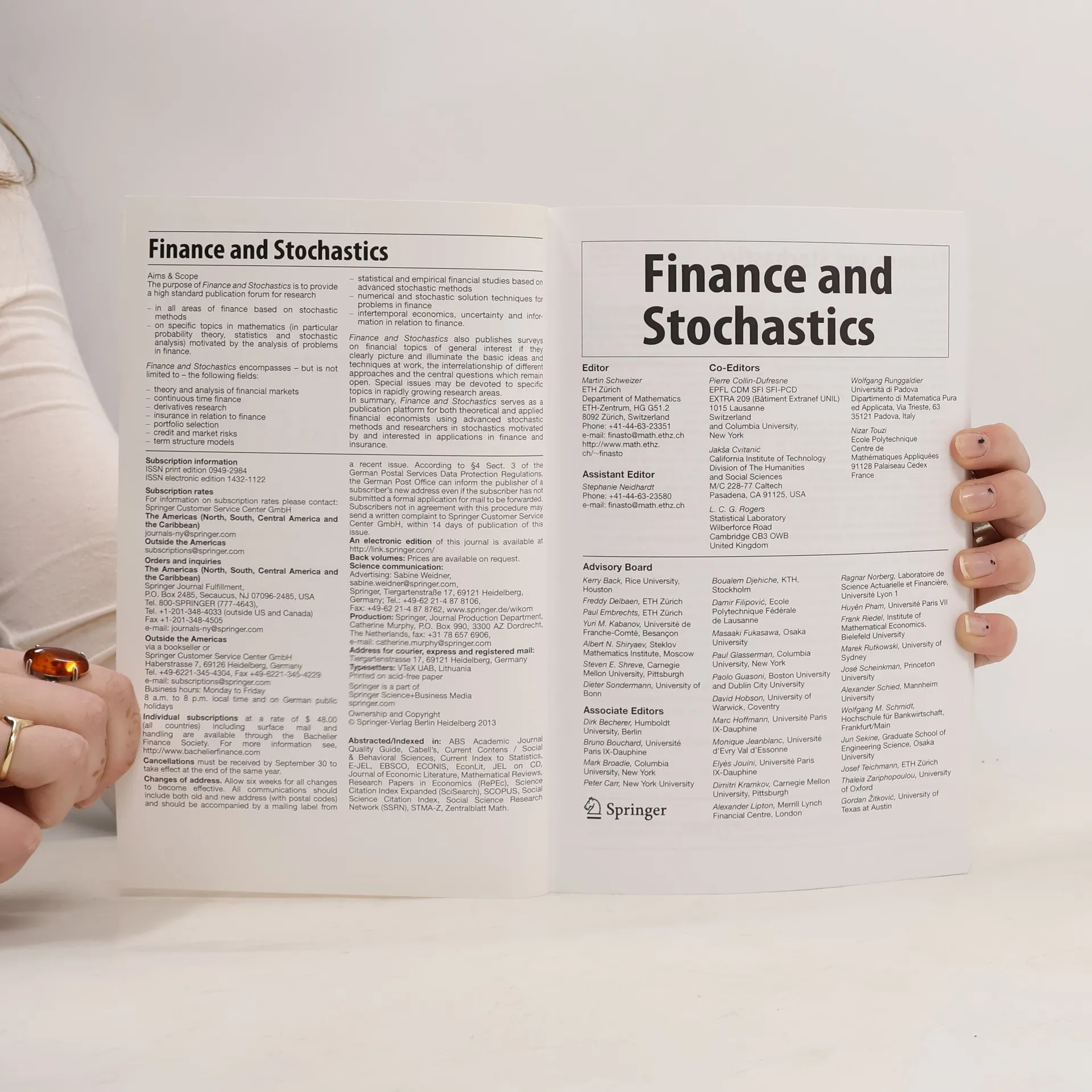 Finance and Stochastics, Autorenkollektiv