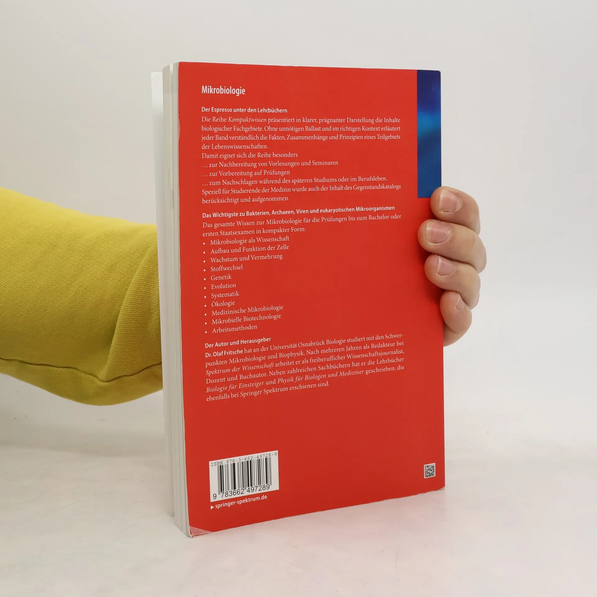 Die Reihe Kompaktwissen präsentiert in klarer, prägnanter Darstellung die Inhalte biologischer Fachgebiete. Ohne unnötigen Ballast und im richtigen Kontext erläutert jeder Band verständlich die Fakten, Zusammenhänge und Prinzipien eines Teilgebiets der Lebenswissenschaften. Damit eignet sich die Reihe besonders… zur Nachbereitung von Vorlesungen und Seminaren … zur Vorbereitung auf Prüfungen… zum Nachschlagen während des späteren Studiums oder im Berufsleben. Speziell für Studierende der Medizin wurde auch der Inhalt des Gegenstandskatalogs berücksichtigt und aufgenommen. Das Wichtigste zu Bakterien, Archaeen, Viren und eukaryotischen Mikroorganismen Das gesamte Wissen zur Mikrobiologie für die Prüfungen bis zum Bachelor oder ersten Staatsexamen in kompakter Form: Mikrobiologie als Wissenschaft Aufbau und Funktion der Zelle Wachstum und Vermehrung Stoffwechsel Genetik Evolution Systematik Ökologie Medizinische Mikrobiologie Mikrobielle Biotechnologie Arbeitsmethoden