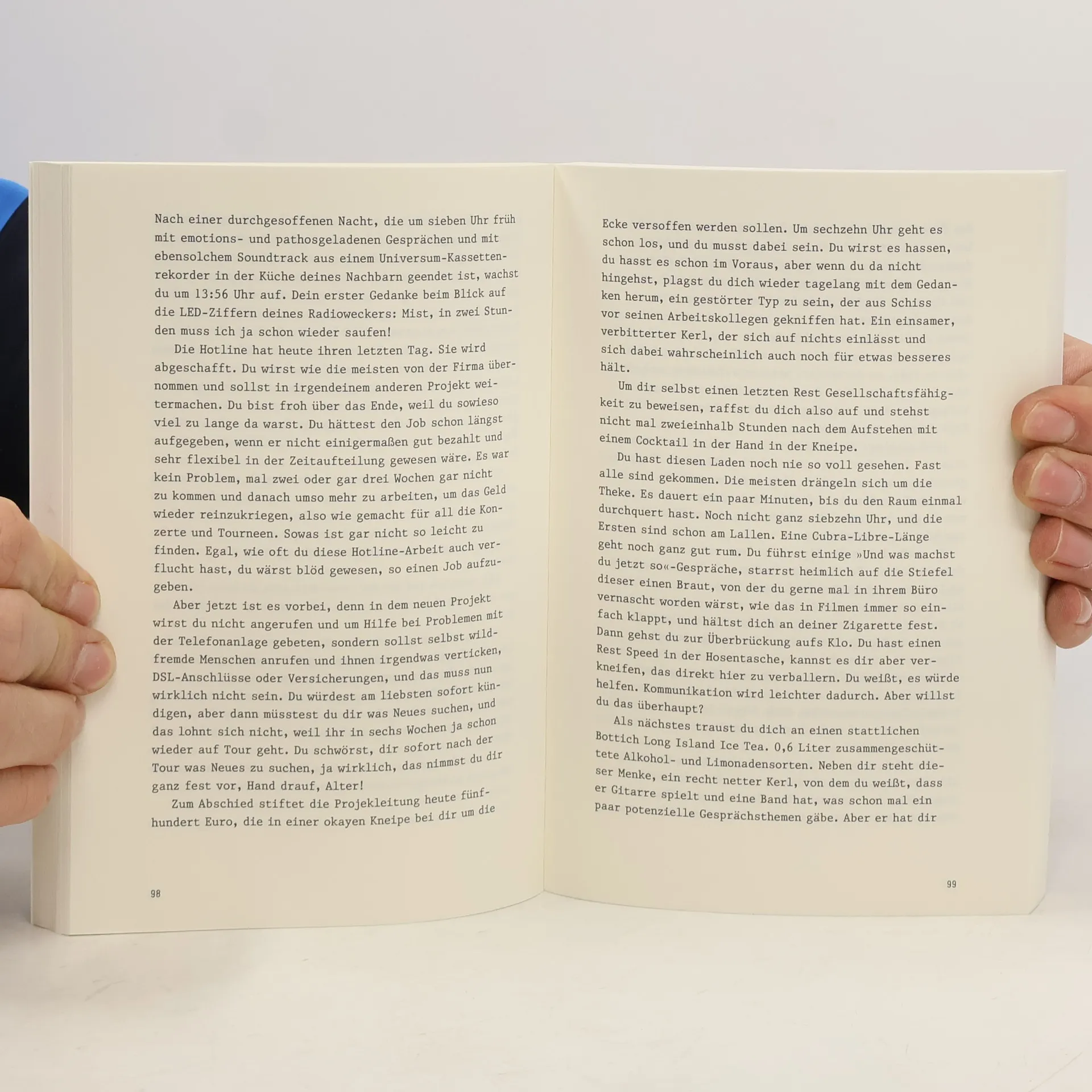 Nach über einem Jahrzehnt Tourleben mit der Band Muff Potter, einer der bekanntesten deutschen Punkbands, präsentiert deren Sänger Nagel sein Romandebüt. Der Protagonist kehrt nach einer ausgedehnten Konzert-Tournee in einen unstrukturierten Alltag zurück. Die sozialen Kontakte außerhalb des Bandgefüges sind verkümmert, und das Leben in der Heimatstadt wird zur permanenten Ausnahmesituation: Alltag wird zum Leben auf Tour. Voller Leerlauf und vertaner Zeit, monoton und kräftezehrend, zugleich glamourös und aufputschend. Das Buch thematisiert Zustände, für die es keine Lösungen gibt und mit denen man sich nicht arrangieren kann; es beleuchtet die Widersprüche, die daraus entstehen, den Wunsch nach Ruhe und die gleichzeitige Angst, einzurosten. Es beschreibt den Alltag zwischen Tour und Heimkehr in Momentaufnahmen, durchzogen von Erinnerungen an das Leben in der Kleinstadt, an schlecht bezahlte Jobs, fast vergessene Träume und vergangene Liebschaften. Besonders im Fokus stehen die Anfänge der Band und die Flucht vor dem erdrückenden Alltag. Der Roman geht über das bekannte Tourtagebuch-Schema hinaus und schildert die Langeweile und Enge im Tourbus sowie die Problematik des Zurückkommens und die Flucht in die Musik in einer angenehm unaufgeregten Sprache.