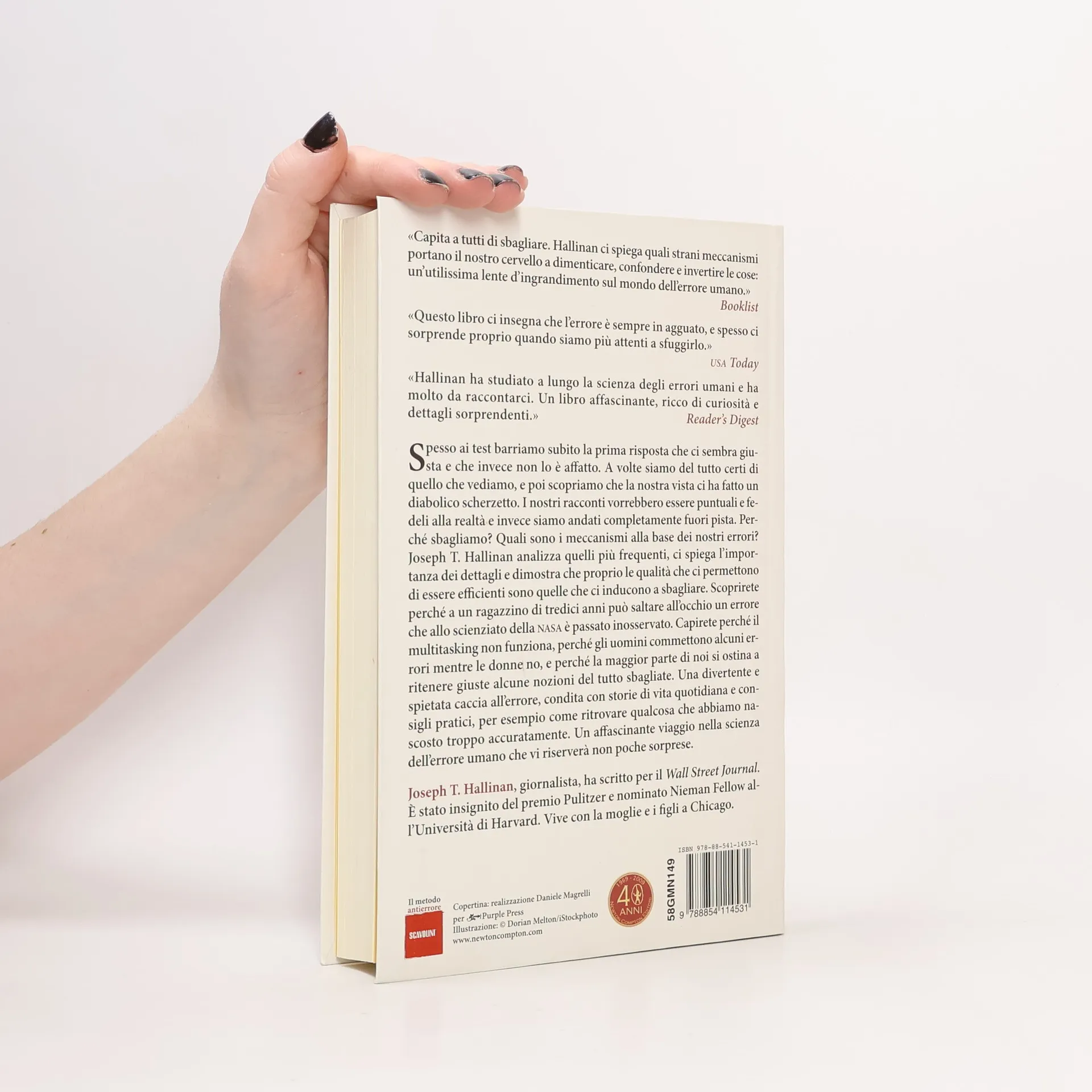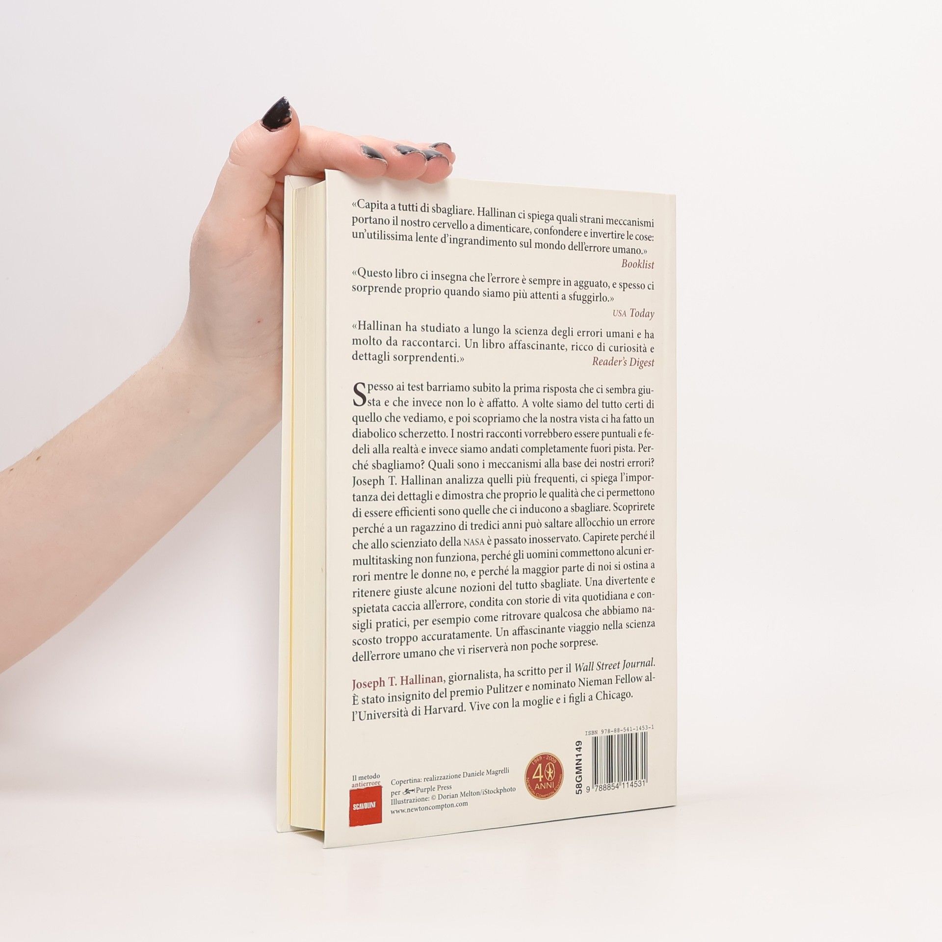 Spesso ai test barriamo subito la prima risposta che ci sembra giusta e che invece non lo è affatto. A volte siamo del tutto certi di quello che vediamo, e poi scopriamo che la nostra vista ci ha fatto un diabolico scherzetto. I nostri racconti vorrebbero essere puntuali e fedeli alla realtà e invece siamo andati completamente fuori pista. Perché sbagliamo? Quali sono i meccanismi alla base dei nostri errori? Joseph T. Hallinan analizza quelli più frequenti, ci spiega l’importanza dei dettagli e dimostra che proprio le qualità che ci permettono di essere efficienti sono quelle che ci inducono a sbagliare. Scoprirete perché a un ragazzino di tredici anni può saltare all’occhio un errore che allo scienziato della NASA è passato inosservato. Capirete perché il multitasking non funziona, perché gli uomini commettono alcuni errori mentre le donne no, e perché la maggior parte di noi si ostina a ritenere giuste alcune nozioni del tutto sbagliate. Una divertente e spietata caccia all’errore, condita con storie di vita quotidiana e consigli pratici, per esempio come ritrovare qualcosa che abbiamo nascosto troppo accuratamente. Un affascinante viaggio nella scienza dell’errore umano che vi riserverà non poche sorprese. Dal vincitore del premio Pulitzer, una guida rigorosa e divertente per imparare dai propri fallimenti, organizzarsi meglio e non sbagliare più.