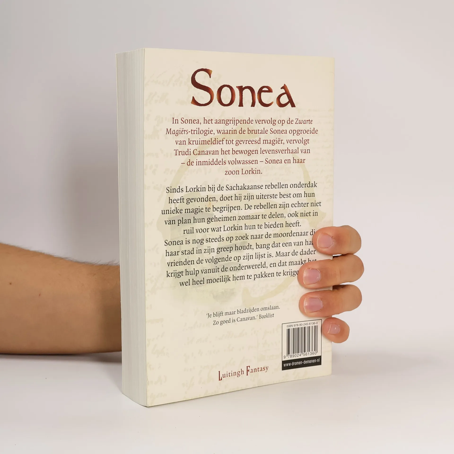 In Sonea, het aangrijpende vervolg op de Zwarte Magiërs-trilogie, waarin de brutale Sonea opgroeide van kruimeldief tot gevreesd magiër, vervolgt Trudi Canavan het bewogen levensverhaal van de - inmiddels volwassen - Sonea en haar zoon Lorkin. Sinds Lorkin bij de Sachakaanse rebellen onderdak heeft gevonden, doet hij zijn uiterste best om hun unieke magie te begrijpen. De rebellen zijn echter niet van plan hun geheimen zomaar te delen, ook niet in ruil voor wat Lorkin hun te bieden heeft. Sonea is nog steeds op zoek naar de moordenaar die haar stad in zijn greep houdt, bang dat een van haar vrienden de volgende op zijn lijst is. Maar de dader krijgt hulp vanuit de onderwereld, en dat maakt het wel heel moeilijk hem te pakken te krijgen.