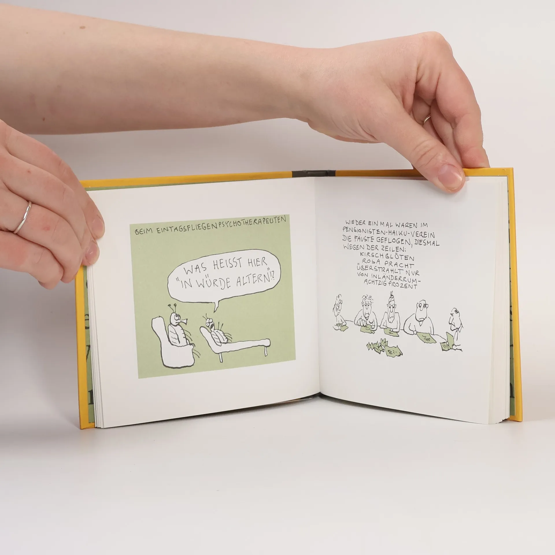 Ist ab vierzig tatsächlich jeder für seine Falten selbst verantwortlich? Wie lässt es sich in Würde altern? Und wann beginnen die Freuden des Alters? Antworten dazu liefern die Herren Klein, Mahler, Much und Rubinowitz in der Auseinandersetzung mit letzten Worten, Pensionisten-Haiku-Vereinen, seniler Bettflucht oder Männern über fünfzig.