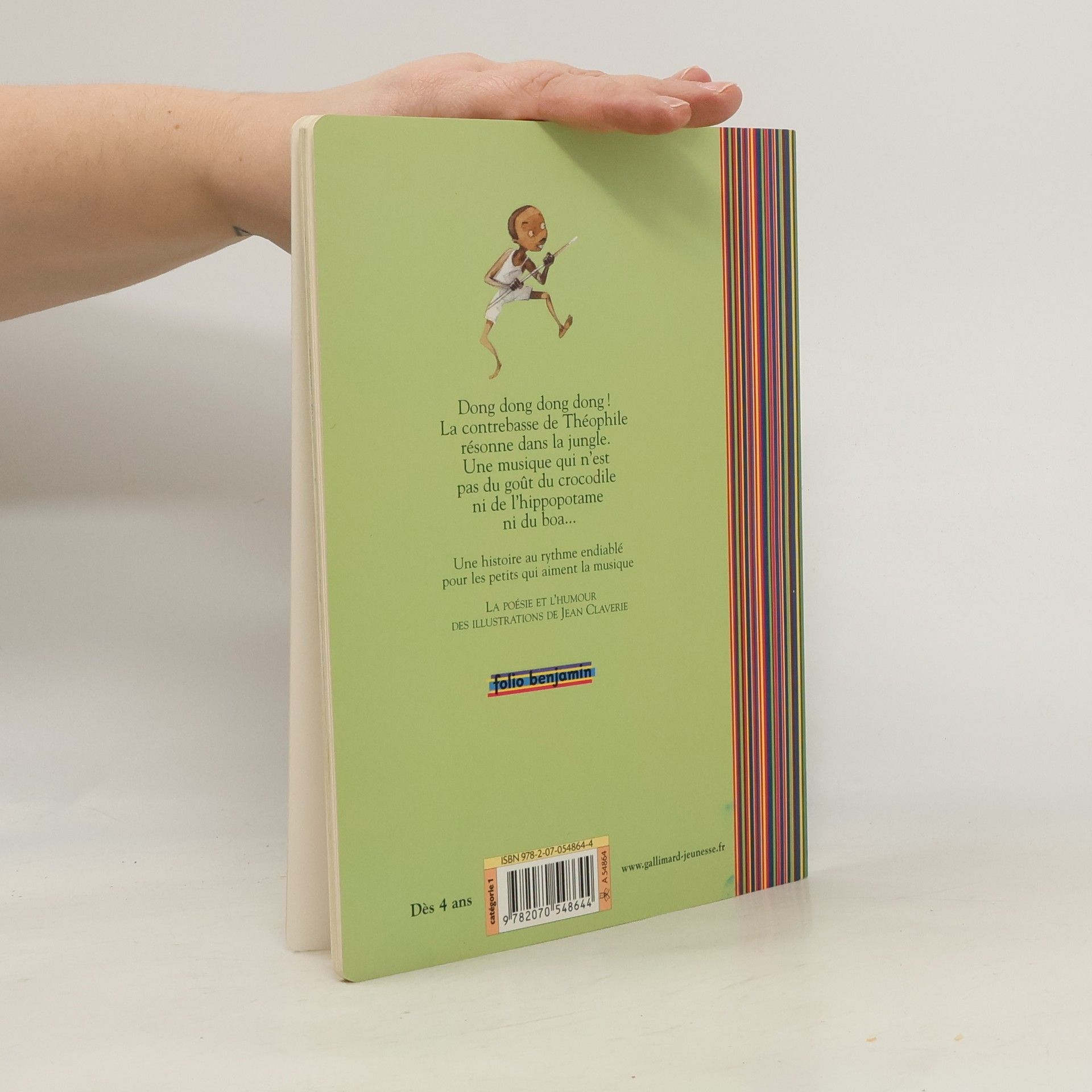 Dong dong dong dong ! La contrebasse de Théophile résonne dans la jungle. Une musique qui n'est pas du goût du crocodile ni de l'hippopotame ni du boa... Une histoire au rythme endiablé pour les petits qui aiment la musique.