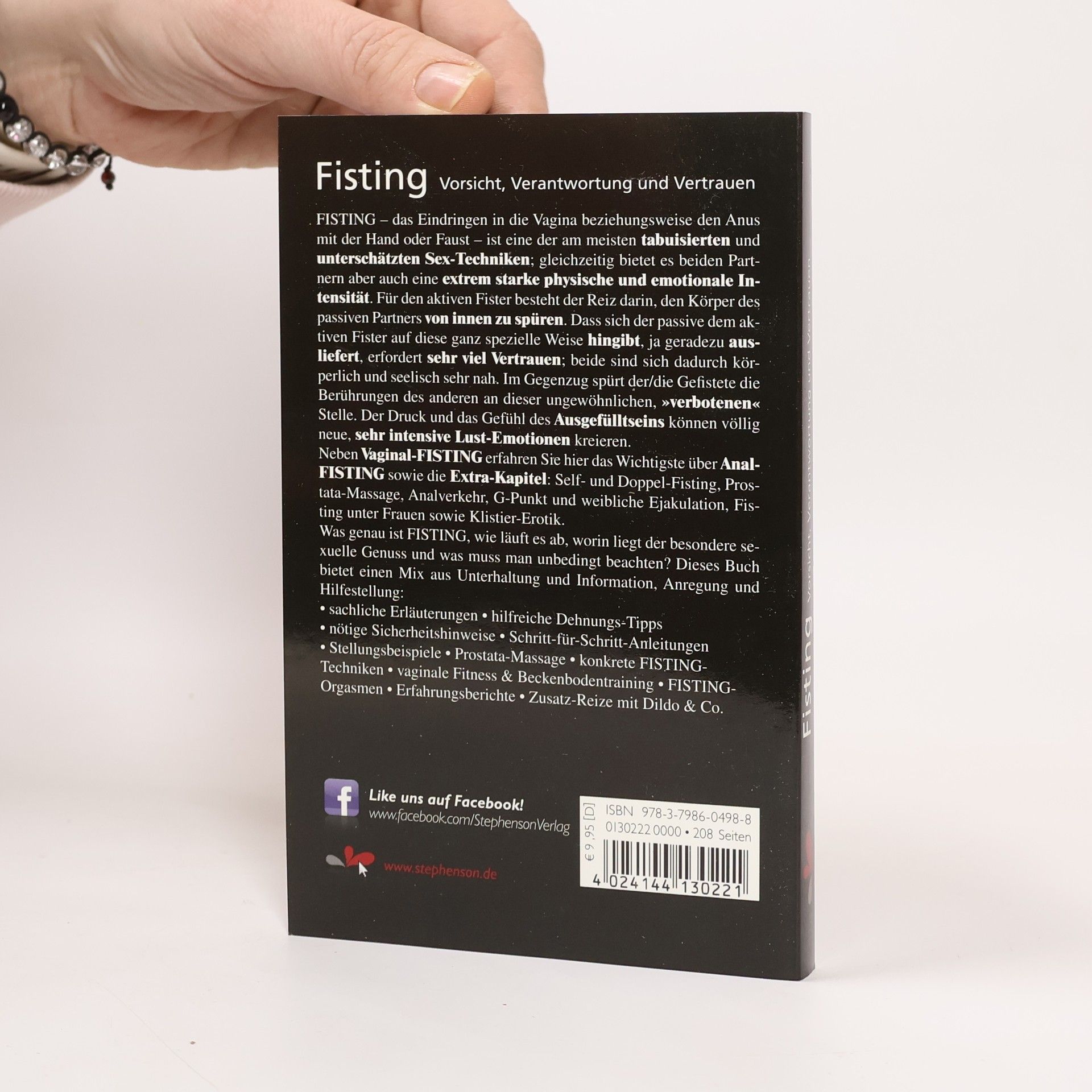 Fisting, das Eindringen in die Vagina oder den Anus mit der Hand oder Faust, ist eine oft tabuierte und unterschätzte Sex-Technik, die jedoch eine außergewöhnliche physische und emotionale Intensität bietet. Für den aktiven Partner besteht der Reiz darin, den Körper des passiven Partners von innen zu spüren. Diese intime Hingabe erfordert viel Vertrauen und schafft eine enge körperliche und seelische Verbindung. Der passive Partner erlebt die Berührungen an dieser besonderen Stelle, was neue, intensive Lust-Emotionen hervorrufen kann. Neben Vaginal-Fisting werden auch wichtige Aspekte des Anal-Fistings behandelt, sowie Themen wie Self- und Doppel-Fisting, Prostata-Massage, Analverkehr, G-Punkt und weibliche Ejakulation, Fisting unter Frauen und Klistier-Erotik. Das Buch klärt über das Wesen des Fistings auf, erläutert den besonderen sexuellen Genuss und gibt wichtige Hinweise. Es bietet eine Mischung aus Unterhaltung und Information mit sachlichen Erklärungen, hilfreichen Dehnungs-Tipps, Sicherheitshinweisen, Schritt-für-Schritt-Anleitungen, Stellungsbeispielen, Prostata-Massage, zusätzlichen Reizen mit Dildo und konkreten Fisting-Techniken sowie Fitness- und Beckenbodentraining für Fisting-Orgasmen und Erfahrungsberichte.
