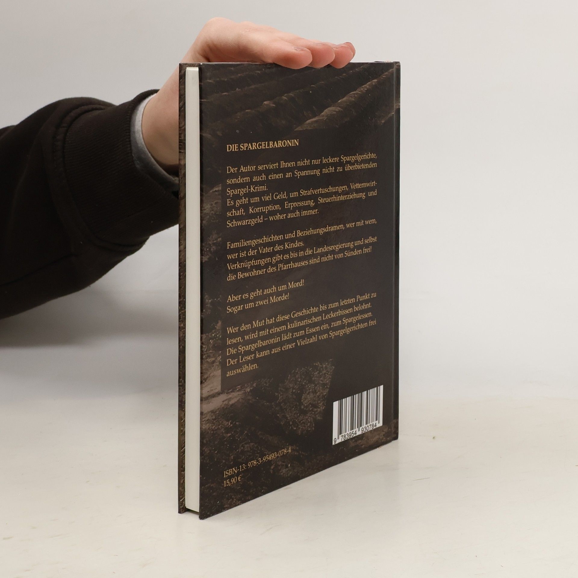 Der Autor serviert Ihnen nicht nur leckere Spargelgerichte, son-dern auch einen nicht an Spannung zu überbietenden Spargel-Krimi. Es geht um viel Geld, um Strafvertuschungen, Vetternwirtschaft, Korruption, Erpressung, Steuerhinterziehung und Schwarzgeld – woher auch immer. Familiengeschichten und Beziehungsdramen, wer mit wem, wer ist der Vater des Kindes. Verknüpfungen gibt es bis in die Landesregierung und selbst die Bewohner des Pfarrhauses sind nicht von Sünden frei! Aber es geht auch um Mord! Sogar um zwei Morde! Wer den Mut hat diese Geschichte bis zum letzten Punkt zu lesen, wird mit einem kulinarischen Leckerbissen belohnt. Die Spargelbaronin lädt zum Essen ein, zum Spargelessen. Der Leser kann aus einer Vielzahl von Spargelgerichten frei auswählen.