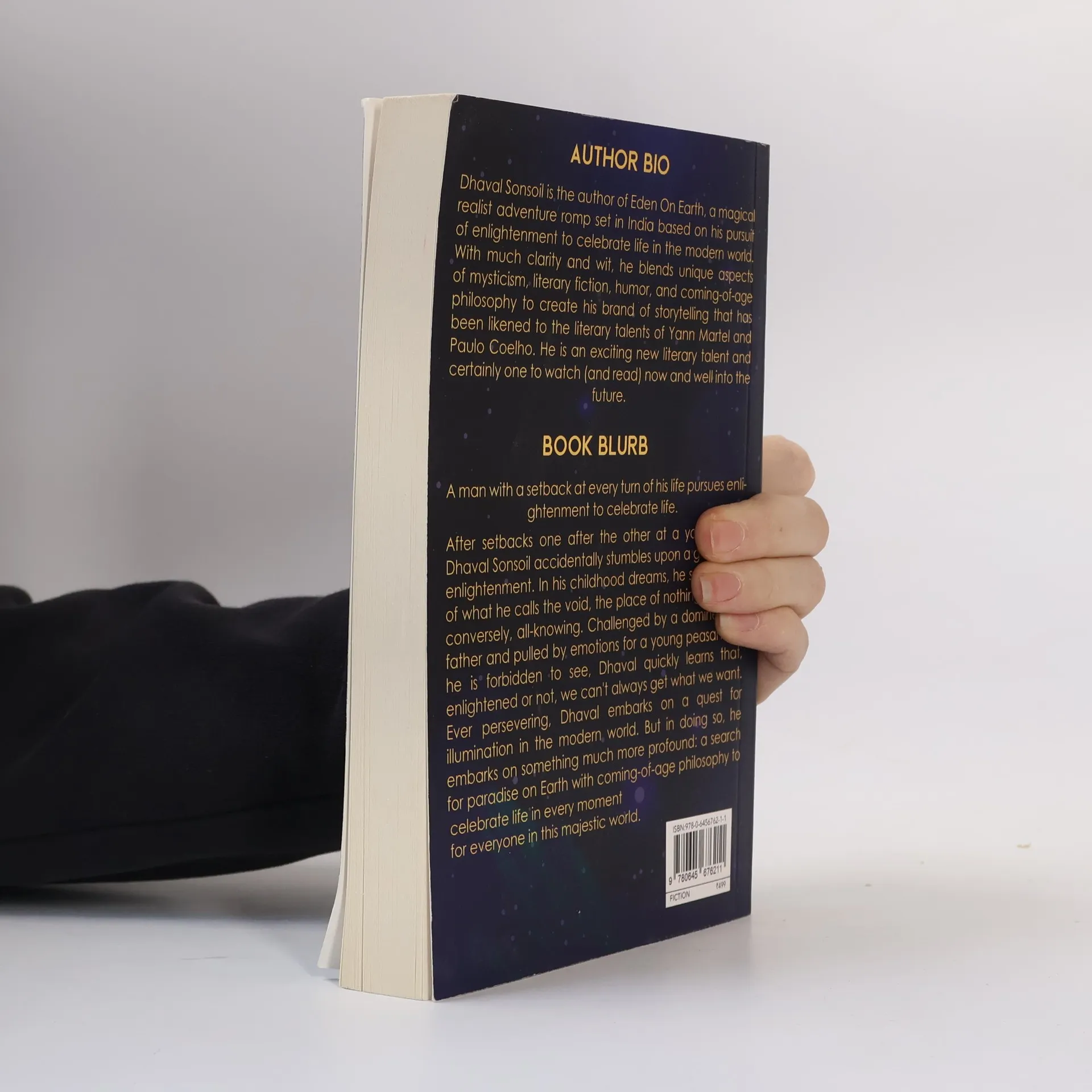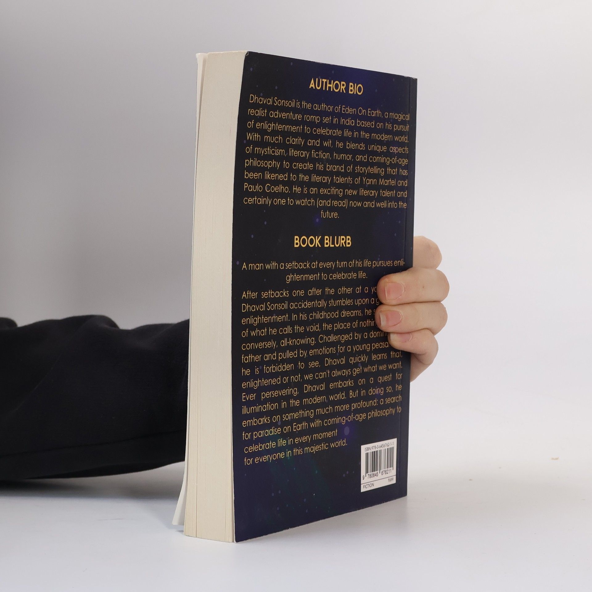 After setbacks one after the other at a young age, Dhaval Sonsoil accidentally stumbles upon a glimpse of enlightenment. In his childhood dreams, he sees visions of what he calls the void, the place of nothingness but, conversely, all-knowing. Challenged by a domineering father and pulled by emotions for a young peasant girl he is forbidden to see, Dhaval quickly learns that, enlightened or not, we can't always get what we want. Ever persevering, Dhaval embarks on a quest for illumination in the modern world. But in doing so, he embarks on something much more profound: a search for paradise on Earth with coming-of-age philosophy to celebrate life in every moment for everyone in this majestic world. Eden on Earth is an epic romance and magical realist adventure set in India. In the quest to find 'life' after a series of setbacks and tragedies, Dhaval Sonsoil embarks upon something much more than a 'living life' with coming of age philosophy, finally unearthing a 'celebrating life' to reunite with his soul mate Asha after many years. The novel has an overarching sense of beauty (especially concerning the natural world) and a human tragedy. Spiritual enlightenment is the main theme but nothing religious. The story is eclectic and includes many cultural vibes and spiritual and philosophical ideas.
