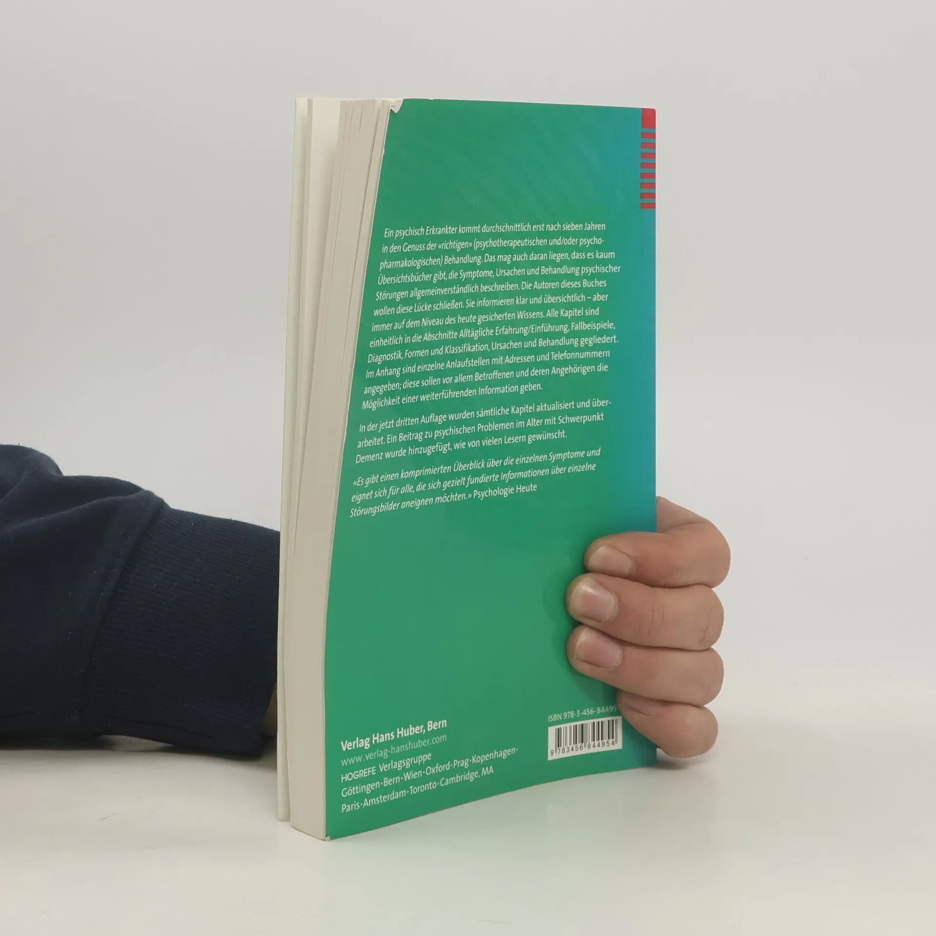 Das Buch gibt einen komprimierten Überblick über die einzelnen Symptome. Es eignet sich für alle, 'die sich gezielt fundierte Informationen über einzelne Störungsbilder aneignen möchten'. Psychologie Heute Ein psychisch Erkrankter bekommt durchschnittlich erst nach sieben Jahren die Chance der "richtigen" (psychotherapeutischen und/oder psychopharmakologischen) Behandlung. Das mag auch daran liegen, dass es kaum Übersichtsbücher gibt, die Symptome, Ursachen und Behandlung psychischer Störungen allgemeinverständlich beschreiben. Die Autoren dieses Buches wollen diese Lücke schließen. Sie informieren klar und übersichtlich - aber immer auf dem Niveau des heute gesicherten Wissens. In der dritten Auflage wurden sämtliche Beiträge aktualisiert und überarbeitet. Ein Kapitel zu psychischen Problemen im Alter mit Schwerpunkt Demenz wurde hinzugefügt, was von vielen Lesern gewünscht wurde.