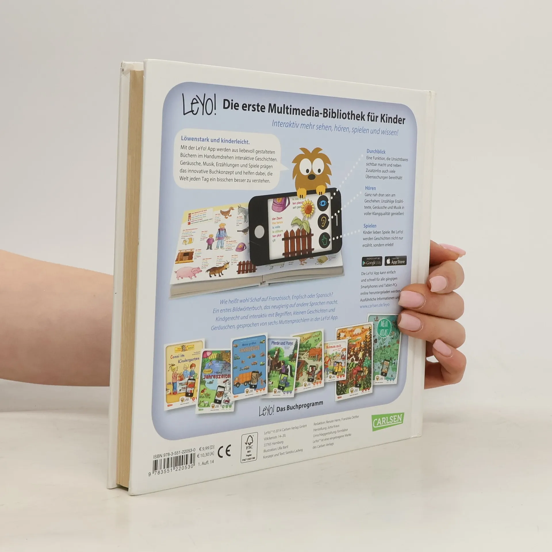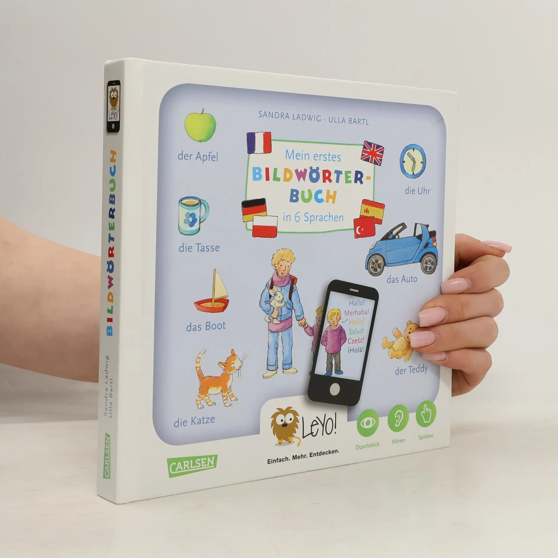 Ein einzigartiges Bildwörterbuch: Mit der LeYo!-App, den liebevollen Abbildungen und kurzen Geschichten können Kinder interaktiv Begriffe neuer Sprachen erfahren. Ob Boot, Uhr oder Pinguin, hier gibt es vieles zu entdecken – für’s Ohr und für’s Auge! Typisch LeYo! Leichte Spiele machen den Einstieg in neue Wörter und Klänge zu einer spannenden Entdeckungsreise – schon für Kleinsten. Sechs Sprecher haben in ihrer Muttersprache die Details des Alltags vertont und laden auf kindgerechte Weise zum Nachsprechen und Lernen ein. In Deutsch, Englisch, Französisch, Polnisch, Spanisch und Türkisch. LeYo! ® Einfach. Mehr. Entdecken. Mit der LeYo! App werden aus liebevoll gestalteten Büchern im Handumdrehen interaktive Geschichten. Erzählungen, Klangwelten, Wissensvermittlung und Spiele vereinen sich in dieser innovativen und multimedialen Kinderbibliothek und helfen dabei, die Welt jeden Tag und spielerisch ein bisschen besser zu verstehen.