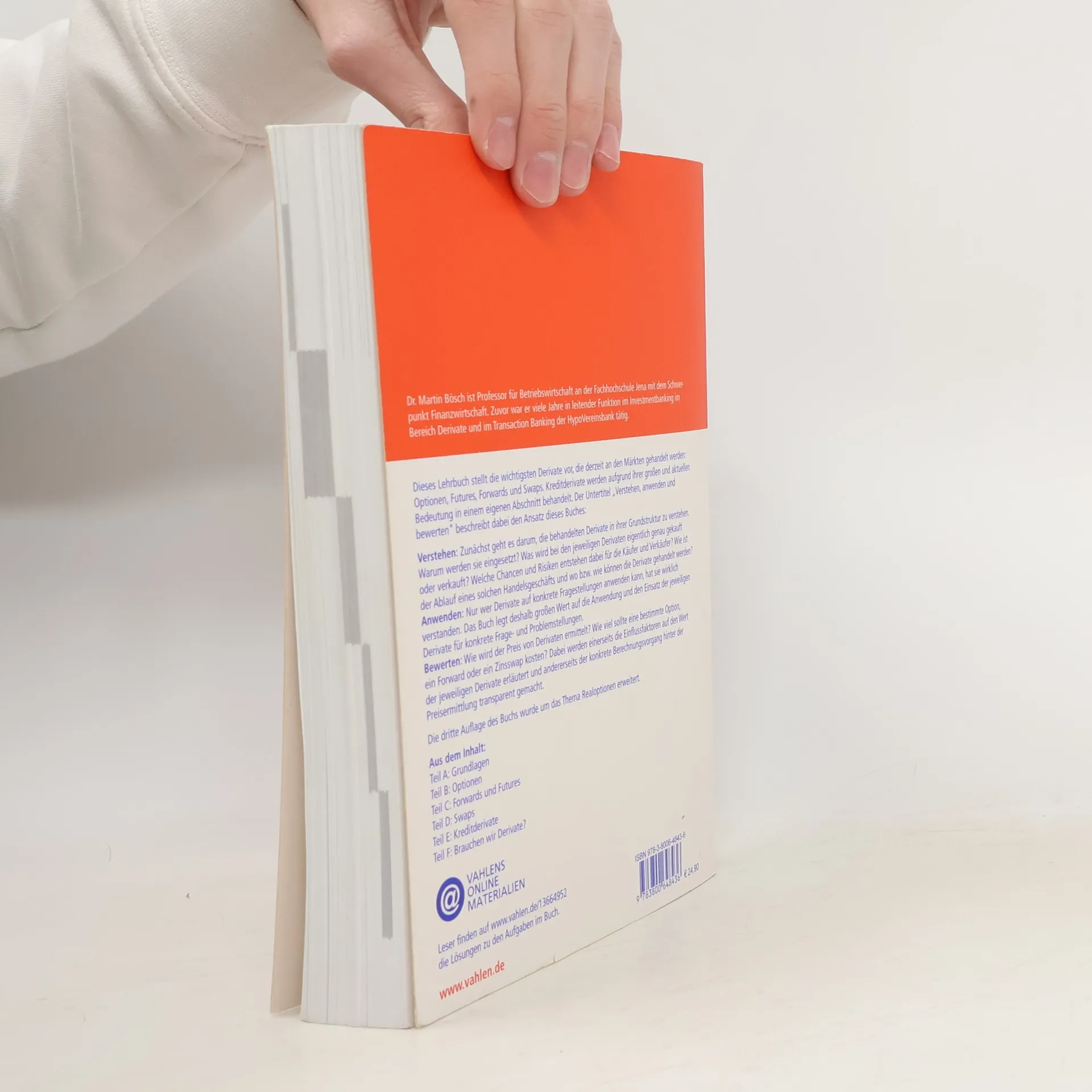 Dieses Lehrbuch präsentiert die wichtigsten Derivate, die an den Märkten gehandelt werden, darunter Optionen, Futures, Forwards und Swaps. Kreditderivate werden aufgrund ihrer aktuellen Bedeutung in einem eigenen Abschnitt behandelt. Der Ansatz des Buches, wie im Untertitel „Verstehen, anwenden und bewerten“ beschrieben, zielt darauf ab, die Grundstruktur der Derivate zu verstehen. Es wird untersucht, warum sie eingesetzt werden und was genau bei den jeweiligen Derivaten gekauft oder verkauft wird. Zudem werden die Chancen und Risiken für Käufer und Verkäufer beleuchtet, der Ablauf von Handelsgeschäften erklärt und die Handelsmöglichkeiten aufgezeigt. Um Derivate wirklich zu verstehen, ist es entscheidend, sie auf konkrete Fragestellungen anwenden zu können. Das Buch legt daher großen Wert auf die praktische Anwendung der Derivate in spezifischen Problemstellungen. Es behandelt die Preisermittlung von Derivaten und erläutert die Einflussfaktoren auf ihren Wert sowie den Berechnungsprozess der Preisfindung. Die dritte Auflage wurde um das Thema Realoptionen erweitert. Dr. Martin Bösch, Professor für Betriebswirtschaft an der Fachhochschule Jena mit Schwerpunkt Finanzwirtschaft, bringt zudem seine umfangreiche Erfahrung aus dem Investmentbanking und Transaction Banking ein.