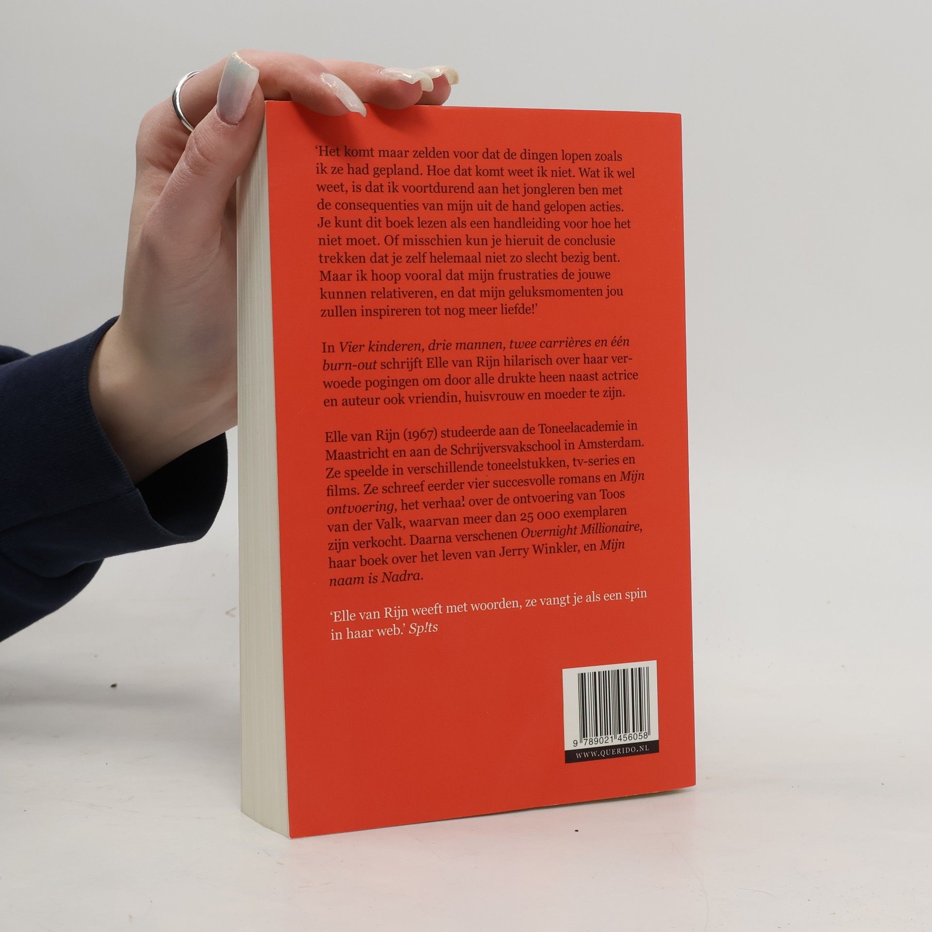 Het komt maar zelden voor dat de dingen lopen zoals ik ze had gepland. Hoe dat komt weet ik niet. Wat ik wel weet, is dat ik voortdurend aan het jongleren ben met de consequenties van mijn uit de hand gelopen acties. Je kunt dit boek lezen als een handleiding voor hoe het niet moet. Of misschien kun je hieruit de conclusie trekken dat je zelf helemaal niet zo slecht bezig bent. Maar ik hoop vooral dat mijn frustraties de jouwe kunnen relativeren, en dat mijn geluksmomenten jou zullen inspireren tot nog meer liefde!In Vier kinderen, drie mannen, twee carrières en één burn-out schrijft Elle van Rijn hilarisch over haar verwoede pogingen om door alle drukte heen naast actrice en auteur ook vriendin, huisvrouw en moeder te zijn.