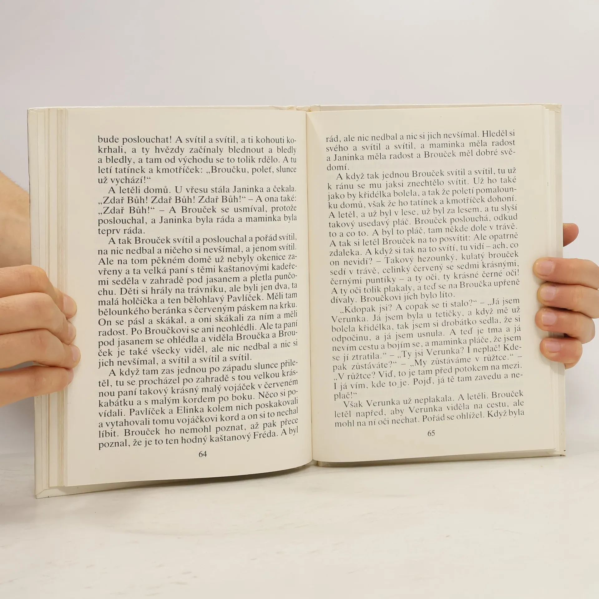 Broučky, jediné umělecké literární dílo Jana Karafiáta (1846–1929), potkaly nejednoduché osudy. Roku 1876 anonymně vyšel skromný, neilustrovaný svazek – tehdy s názvem Broučci pro malé i velké děti – a zapadl vcelku bez povšimnutí. Až teprve po sedmnácti letech knížku objevil a zpopularizoval novinář Gustav Jaroš, který ji označil jako „snad nejkrásnější květ naší české literatury dětské“ a jejího autora nazval „českým Andersenem“. Poetická obraznost Broučků, citlivý přírodní lyrismus a ušlechtilý humanismus si dále uchovávají nepomíjející platnost. I jazykově, svým jadrným básnickým slohem šťastně spojujícím hovorovost lidové řeči s vytříbenými biblismy, je dílo Jana Karafiáta pozoruhodné. Čtenářsky i posluchačsky stále přitažlivé zůstávají postavičky malých hrdinů, broučků a berušek, které při všech svých světlých stránkách nejsou zbaveny pravdivých lidských vlastností. Spolehlivým průvodcem Broučků jsou ilustrace národního umělce Jiřího Trnky, které přes časový odstup od svého vzniku na počátku čtyřicátých let nic nepozbyly ze svého půvabu.... celý text