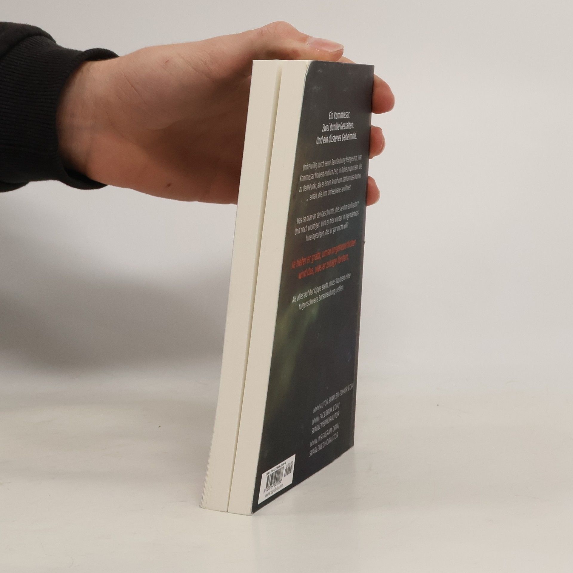 Ausgabe für den Buchhandel: Covergestaltung = matt, Format = 12 x 19 cm Ein Kommissar. Zwei dunkle Gestalten. Und ein verhängnisvolles Geheimnis. Unfreiwillig durch seine Beurlaubung festgesetzt, hat Kommissar Norbert endlich Zeit, in Ruhe zu puzzeln. Bis zu dem Punkt, als er einen Anruf von Katharinas Mutter erhält, die ihm Unfassbares eröffnet. Was ist dran an der Geschichte, die sie ihm auftischt? Und noch wichtiger: Wird er hier wieder in irgendetwas hineingezogen, das er gar nicht will? Je tiefer er gräbt, umso ungeheuerlicher wird das, was er zutage fördert. Als alles auf der Kippe steht, muss Norbert eine folgenschwere Entscheidung treffen.
