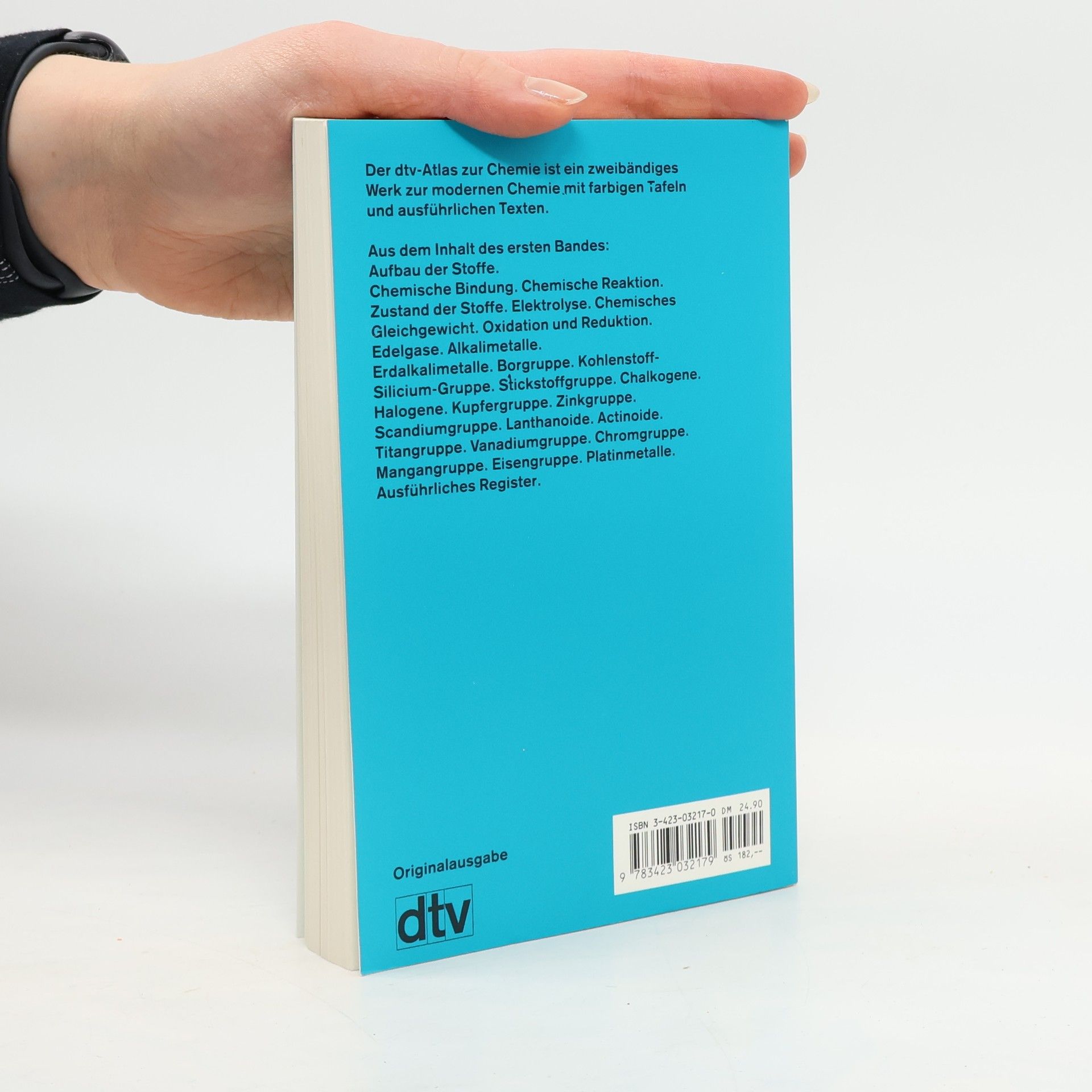 Grundlagen und Ergebnisse der modernen Chemie Der dtv-Atlas Chemiewendet sich an Schüler, Laboranten, Techniker, Studenten, Lehrer und alle, die sich über den neuesten Stand in der Chemie informieren wollen. Band 1 enthält allgemeine Kapitel über Aufbau der Stoffe, chemische Bindung, chemische Reaktion, Zustand der Stoffe, chemisches Gleichgewicht, Oxidation und Reduktion. Der Hauptteil befaßt sich mit der anorganischen Chemie: nach Gruppen des Periodensystems geordnet werden Eigenschaften, Nachweis, Vorkommen, Gewinnung und Verwendung der Elemente erläutert und die wichtigsten Verbindungen und Reaktionen behandelt.