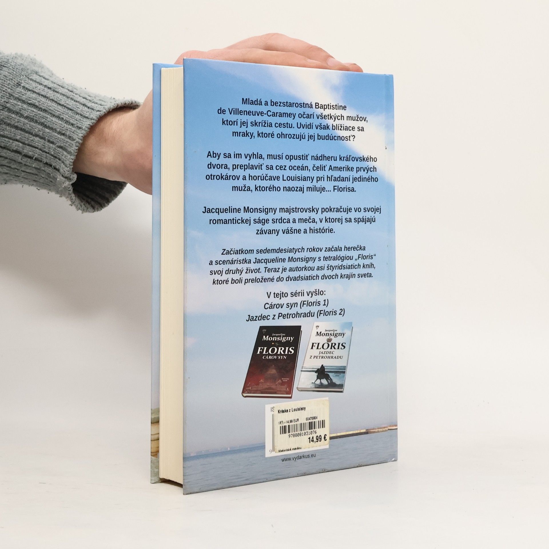Mladá a bezstarostná Baptistine de Villeneuve-Caramey očarí, i proti svojej vôli, všetkých mužov, ktorí jej skrížia cestu. Uvidí však blížiace sa mraky, ktoré ohrozujú jej budúcnosť? Aby sa im vyhla, bude musieť opustiť nádheru kráľovského dvora, preplaviť sa cez oceán, čeliť Amerike prvých otrokárov a horúčave Louisiany pri hľadaní jediného muža, ktorého naozaj miluje, i keď si to nedokáže priznať... Florisa. Jacqueline Monsigny majstrovsky pokračuje vo svojej ságe srdca a meča, v ktorej sa spájajú závany vášne a histórie. Začiatkom sedemdesiatych rokov začala herečka a scenáristka Jacqueline Monsigny s tetralógiou „Floris“ svoj druhý život. Teraz je autorkou asi štyridsiatich kníh, ktoré boli preložené do dvadsiatich dvoch krajín sveta.