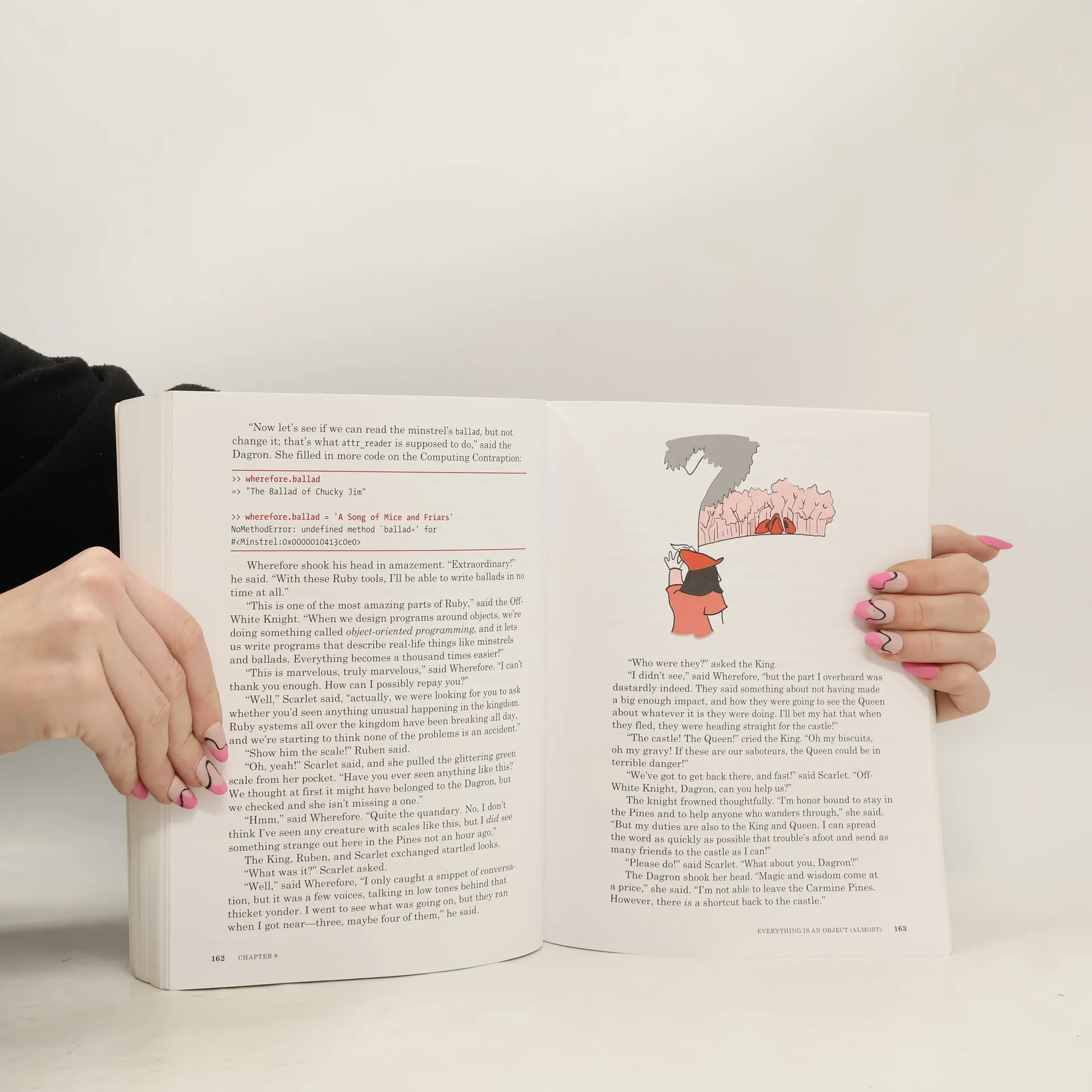 The Ruby programming language is perfect for beginners: easy to learn, powerful, and fun to use! But wouldn't it be more fun if you were learning with the help of some wizards and dragons? Ruby Wizardry is a playful, illustrated tale that will teach you how to program in Ruby by taking you on a fantastical journey. As you follow the adventures of young heroes Ruben and Scarlet, you’ll learn real programming skills, like how to: –Use fundamental concepts like variables, symbols, arrays, and strings –Work with Ruby hashes to create a programmable breakfast menu –Control program flow with loops and conditionals to help the Royal Plumber –Test your wild and crazy ideas in IRB and save your programs as scripts –Create a class of mini-wizards, each with their own superpower! –Organize and reuse your code with methods and lists –Write your own amazing interactive stories using Ruby Along the way, you’ll meet colorful characters from around the kingdom, like the hacker Queen, the Off-White Knight, and Wherefore the minstrel. Ruby Wizardry will have you (or your little wizard) hooked on programming in no time. For ages 10+ (and their parents!)