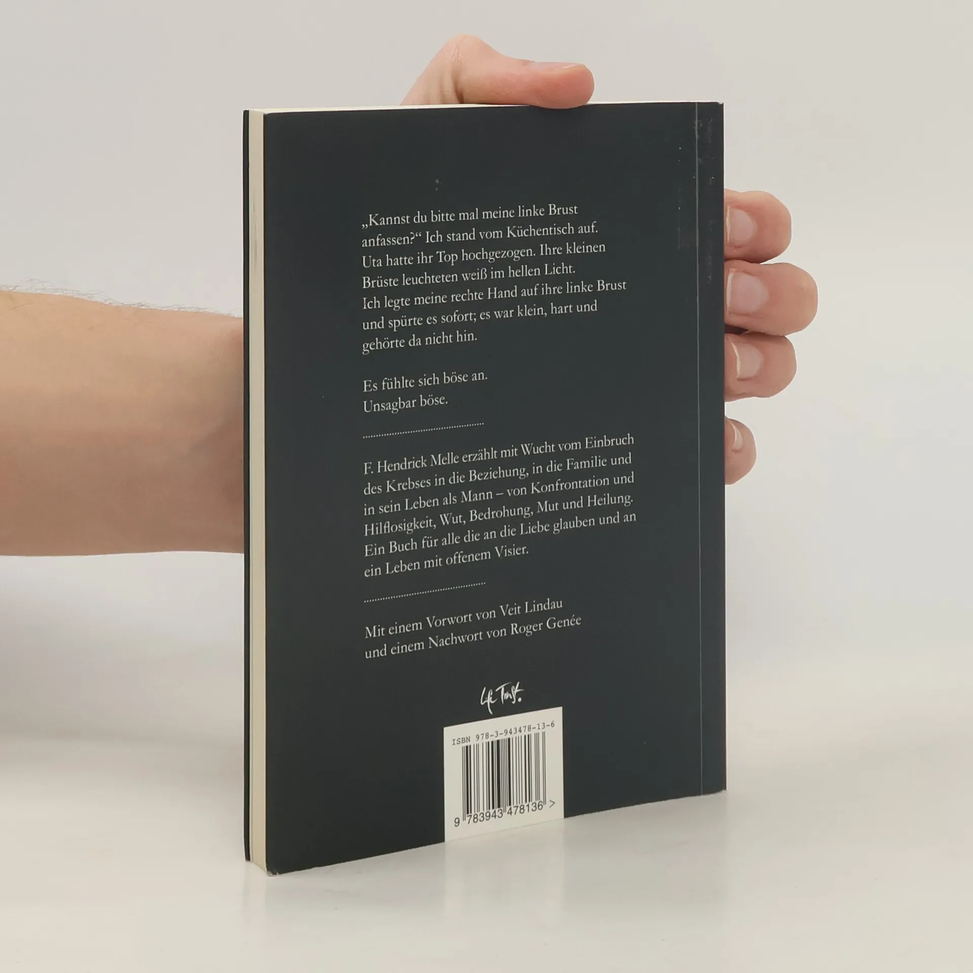 Kannst du bitte mal meine linke Brust anfassen? Ich stand vom Küchentisch auf. Uta hatte ihr Top hochgezogen. Ihre kleinen Brüste leuchteten weiß im hellen Licht. Ich legte meine rechte Hand auf ihre linke Brust und spürte es sofort; es war klein, hart und gehörte da nicht hin. Es fühlte sich böse an. Unsagbar böse. F. Hendrick Melle erzählt mit Wucht vom Einbruch des Krebses in die Beziehung, in die Familie und in sein Leben als Mann - von Konfrontation und Hilflosigkeit, Wut, Bedrohung, Mut und Heilung. Ein Buch für alle die an die Liebe glauben und an ein Leben mit offenem Visier.