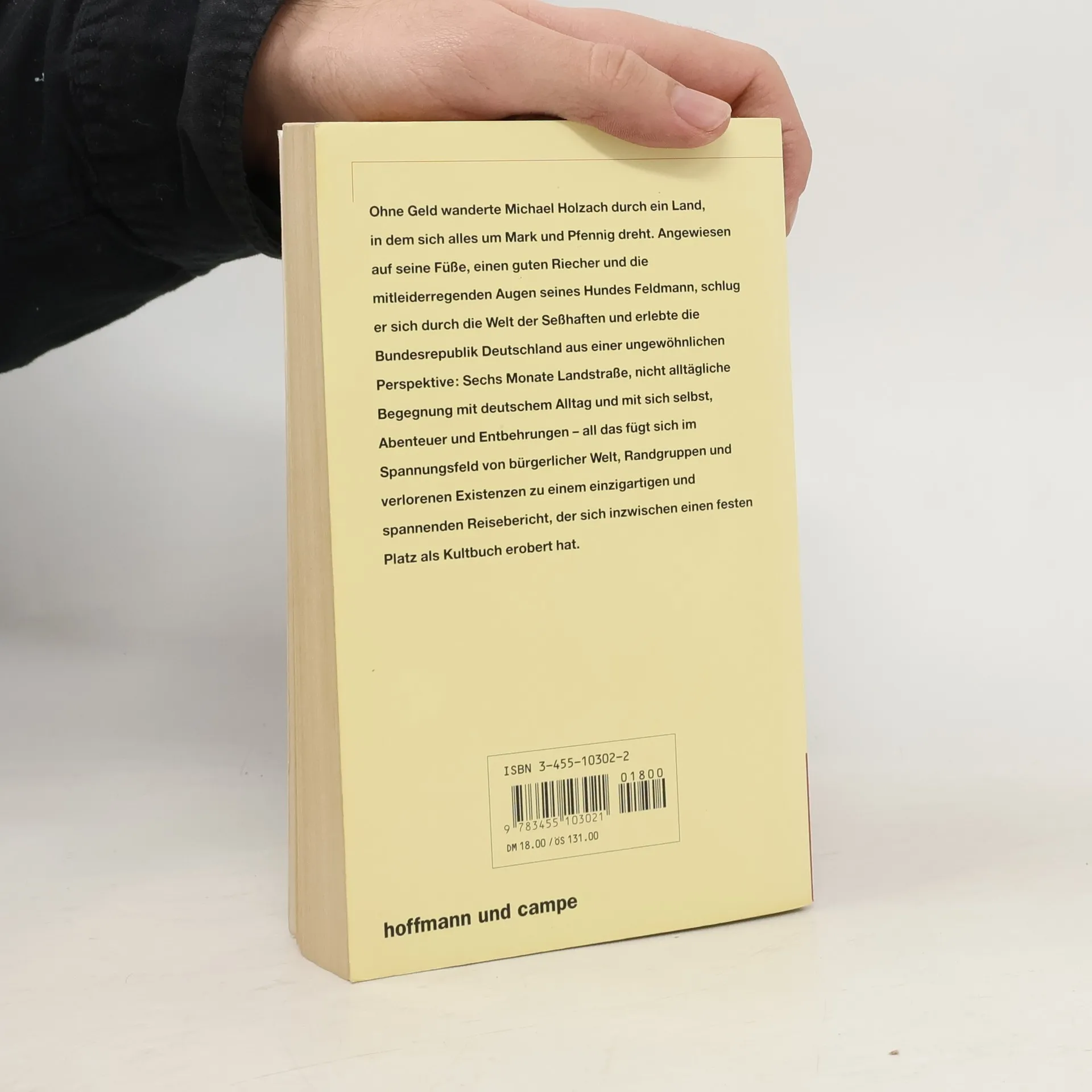 2.500 Kilometer zu Fuß unterwegs – vom Hamburger Norden bis zum Bodensee im Süden. Ohne Geld, einen Rucksack geschultert und dem Boxermischling 'Feldmann' an seiner Seite machte sich Michael Holzach 1980 auf die Reise und erlebte Deutschland aus einer ungewöhnlichen Perspektive: für einen Becher Milch hackt er für einen Bauern Holz, für einen Teller Suppe schleppt er bei Zigeunern Wasser-kanister, beim Nato-Manöver verschafft er sich als Doppelagent einen vollen Magen, in einem Kloster beherbergt man ihn 'wie den Heiland selbst'. Sechs Monate ist er auf den Landstraßen unterwegs, im Spannungsfeld von bürgerlicher Welt, Randgruppen und verlorenen Existenzen, er lernt viel über Gastfreundschaft und ihr Gegenteil. Das Ergebnis seiner abenteuerlichen und entbehrungsreichen Reise ist ein einzigartiger und spannender Reisebericht, der sich inzwischen einen festen Platz als Kultbuch erobert hat. Ein Blick zurück auf ein Deutschland in dem sich alles um Mark und Pfennig drehte.
