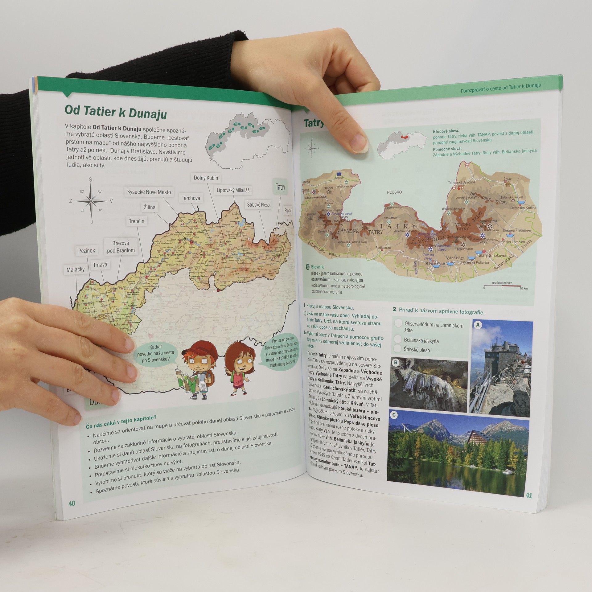 Pracovná učebnica pre štvrtákov je zostavená podľa iŠVP - ISCED 1 pre oblasť Človek a spoločnosť, platného od septembra 2015, a kladie dôraz na splnenie cieľov a vzdelávacieho štandardu predmetu. Autori sú skúsení učitelia, ktorí zabezpečili, že učivo spĺňa všetky požiadavky výkonového a obsahového štandardu. Obsah je rozdelený do troch tematických okruhov, ktoré logicky nadväzujú, aby rozvíjali a upevňovali vedomosti žiakov. Témy sú farebne odlíšené pre lepšiu orientáciu. Učebnica sa zameriava na pozorovanie, skúmanie a objavovanie, pričom umožňuje žiakom dosiahnuť všetky ciele predmetu, ako je čítanie máp a rozprávanie podľa ilustrácií. Úlohy sú zamerané na prácu s mapami, príbehmi a ilustráciami a podporujú zážitkové spoznávanie regiónov Slovenska. Učivo je usporiadané od najjednoduchších úloh po najnáročnejšie, pričom sa zameriava na rôzne úrovne učenia, ako sú zapamätanie, porozumenie a analýza. Učebnica bola navrhnutá tak, aby poskytovala rôzne aktivity na rozvoj zručností a kompetencií primeraných veku. Metodické informácie a cieľové kompetencie sú dostupné pre učiteľov priamo na stránkach.