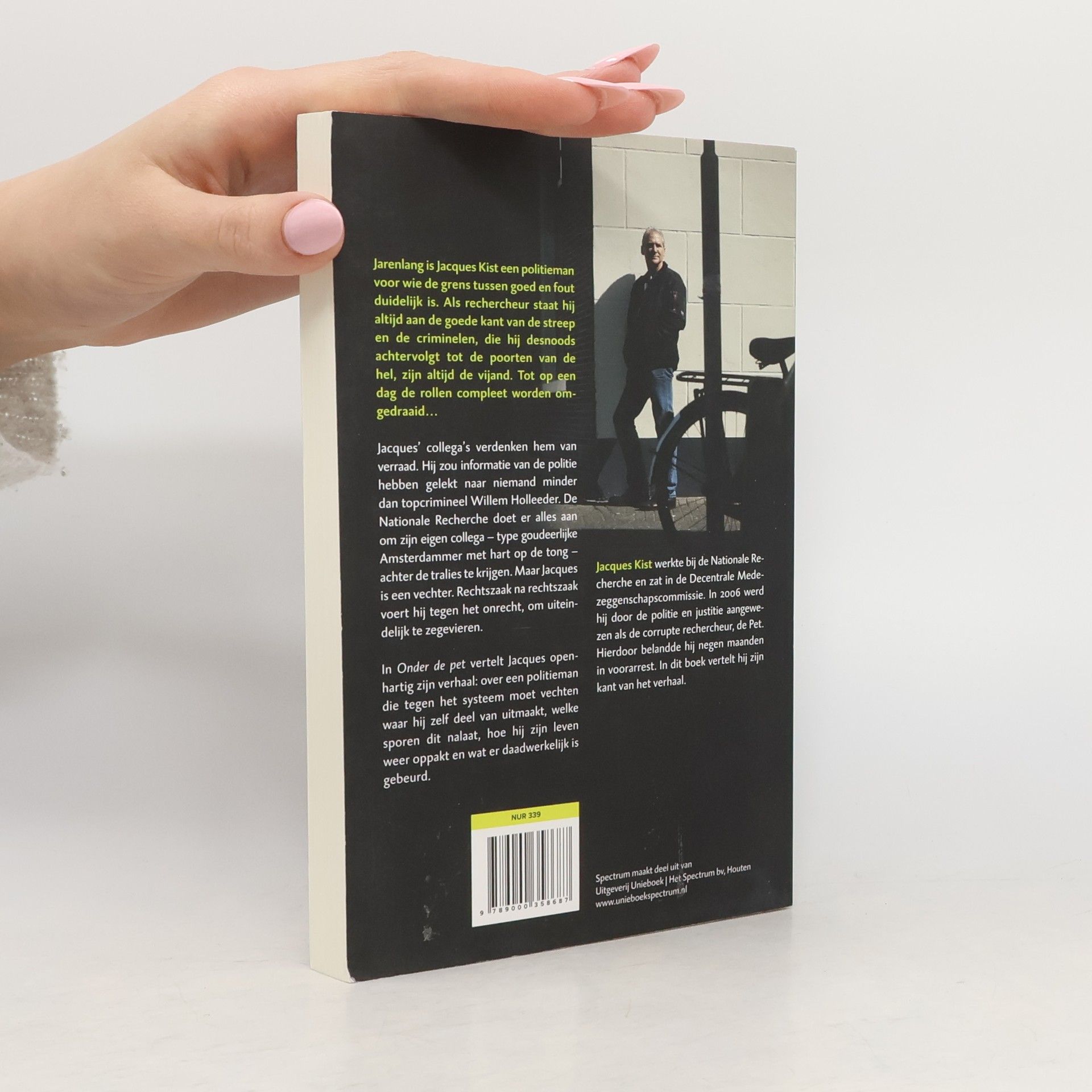 Jarenlang is Sjaak Kist een politieman voor wie de grens tussen goed en fout duidelijk is. Als rechercheur staat hij altijd aan de goede kant van de streep. De criminelen, die hij desnoods achtervolgt tot de poorten van de hel, zijn de vijand. Tot op een dag de rollen compleet worden omgedraaid. Zijn eigen collega’s verdenken Sjaak van verraad. Hij zou informatie van de politie hebben gelekt naar crimineel meesterbrein Willem Holleeder. De Nationale Recherche doet er alles aan om hun eigen collega – type goudeerlijke Amsterdammer, hart op de tong – achter de tralies te krijgen. In 'Onder de pet' vertelt Jacques openhartig zijn verhaal: over een politieman die tegen het systeem moet vechten waar hij zelf deel van uitmaakt, welke sporen dit nalaat, hoe hij zijn leven weer oppakt en wat er daadwerkelijk is gebeurd.