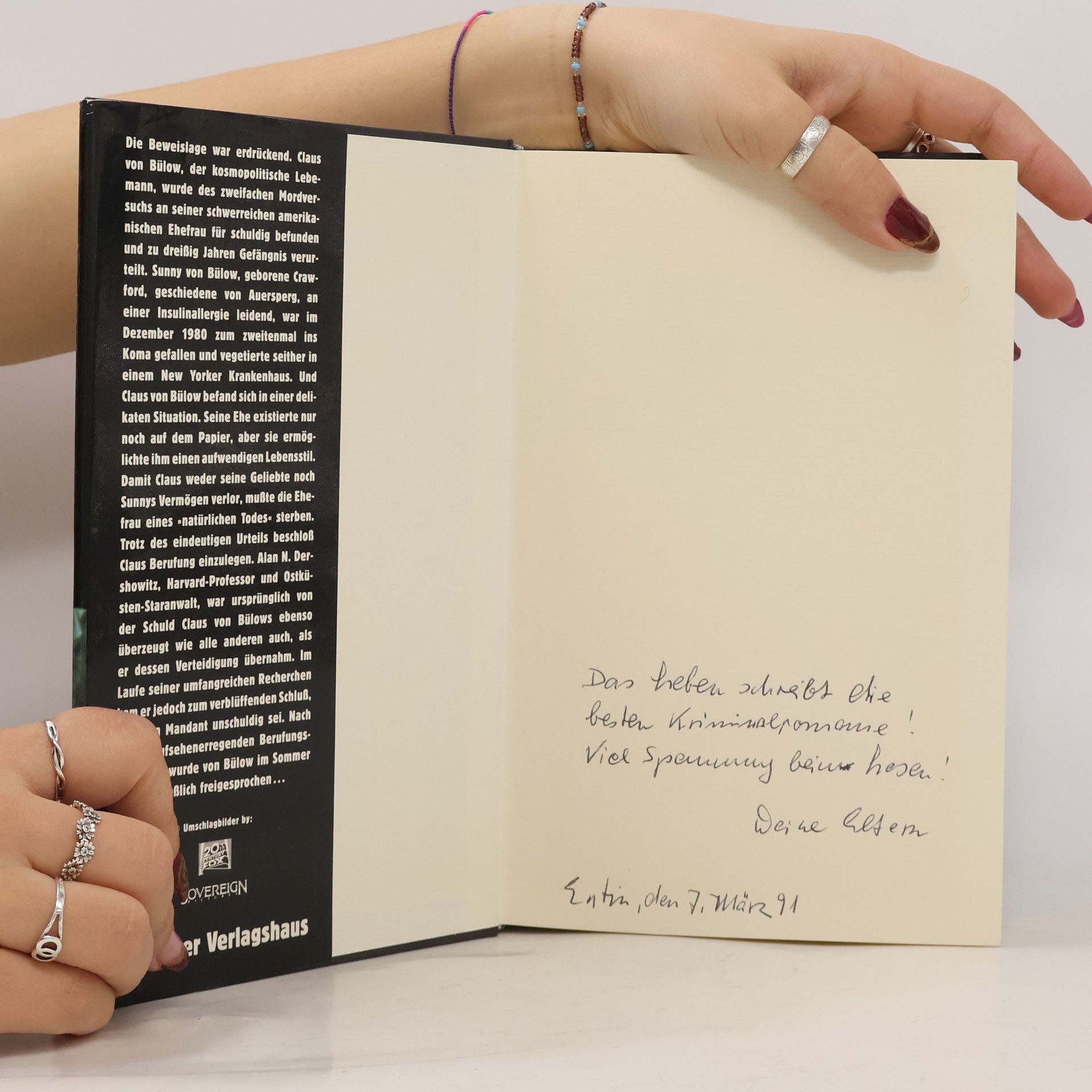 Vorgeschichte und Verlauf des Prozesses gegen Claus von Bülow, Adliger Playboy, 1982 des Mordes an seiner Frau angeklagt, 1985 freigesprochen. auch eine spannend erzählte Geschichte aus der High Society.