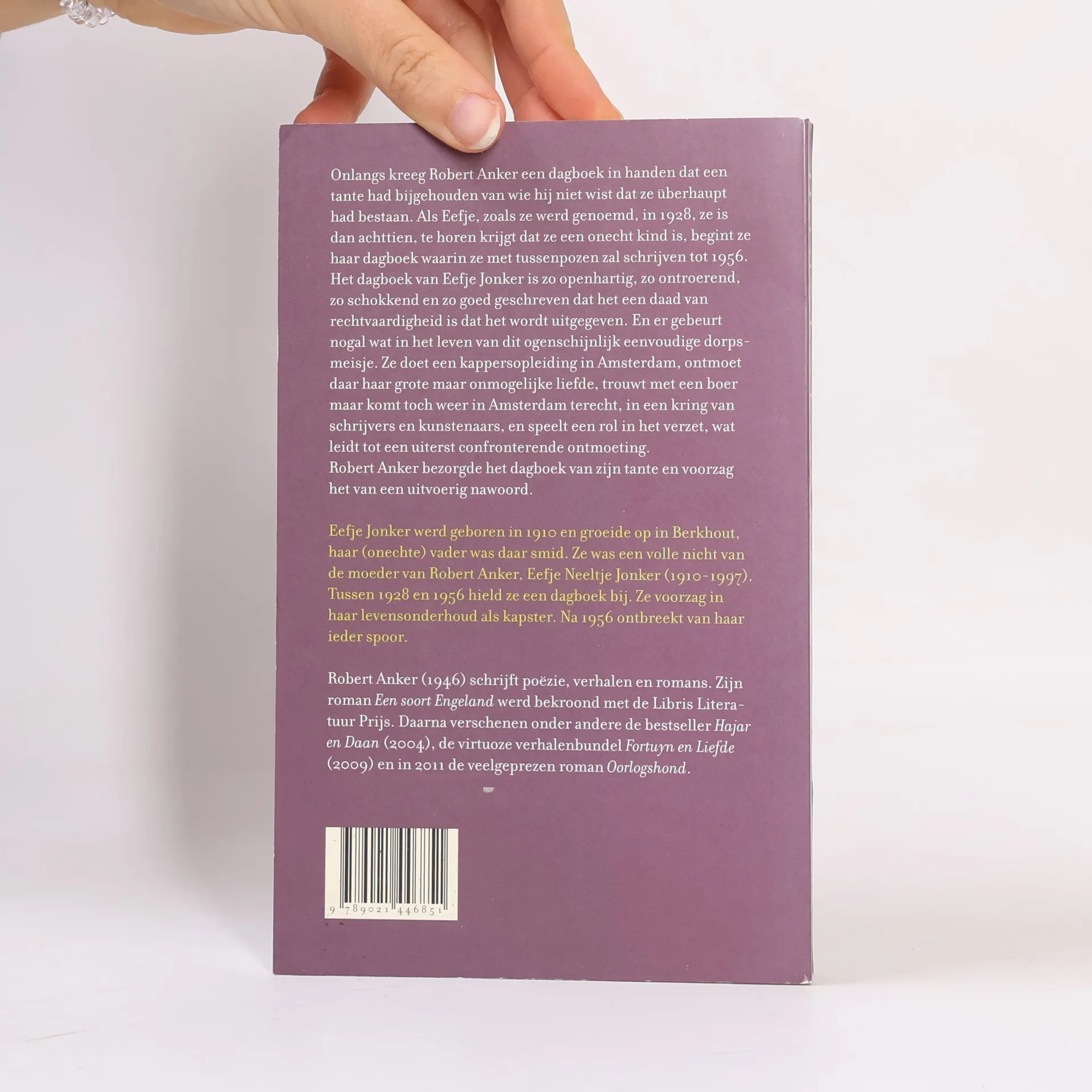 Onlangs kreeg Robert Anker de beschikking over een dagboek dat een tante had bijgehouden van wie hij niet wist dat ze überhaupt had bestaan. Als Eefje, zoals ze werd genoemd, in 1918 te horen krijgt dat ze een onecht kind is, begint ze haar dagboek, waarin ze met tussenpozen schrijft tot 1956. Het dagboek van Eefje Jonker is zo openhartig, zo ontroerend, zo schokkend en zo goed geschreven dat het een daad van rechtvaardigheid is dat het wordt uitgegeven. Want er gebeurt nogal wat in het leven van dit ogenschijnlijk eenvoudig meisje. In haar eigen woorden: 'Eerst vertellen je ouders dat je hun kind niet bent.