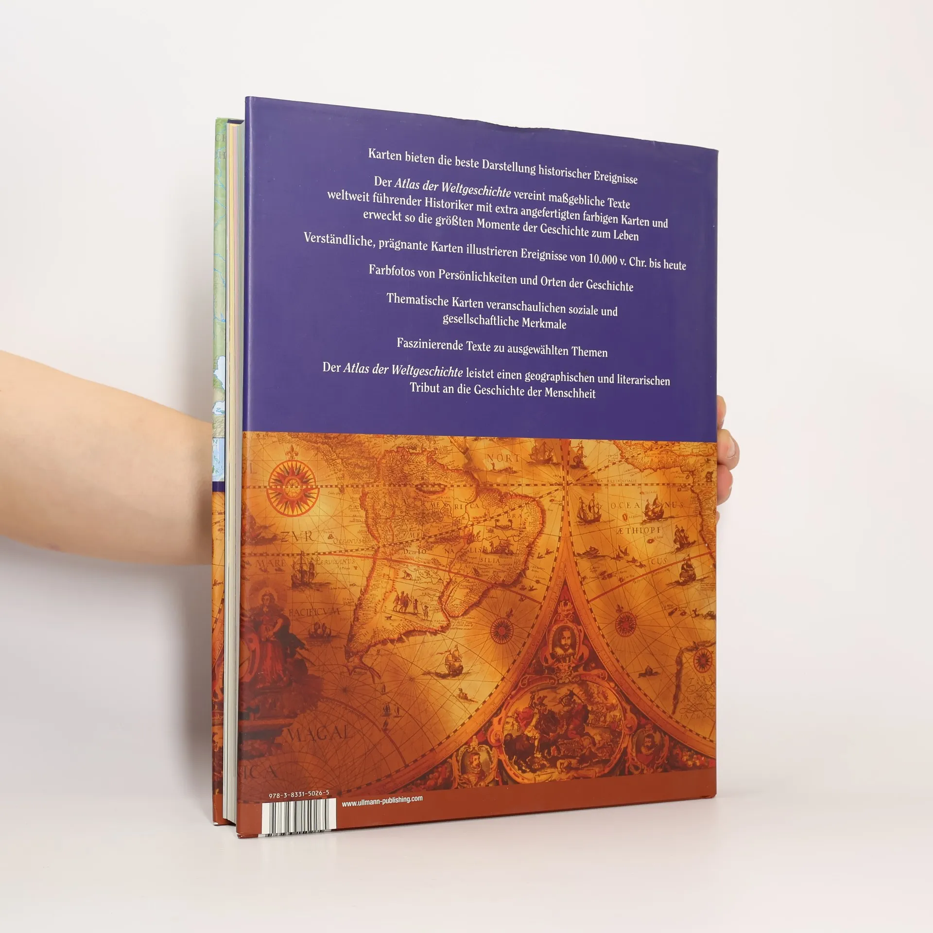 Sei es die Christianisierung der Welt, Marco Polos Asienreise oder Amerikas Expansionspolitik – der Atlas der Weltgeschichte widmet sich diesen und vielen weiteren fesselnden Kapiteln der Weltgeschichte. Chronologisch und klar gegliedert laden farbenfrohe Texte samt detaillierter Karten, Übersichten, veranschaulichenden Tabellen, Zeitleisten und üppigem Bildmaterial zum Schmökern oder zur tiefer gehenden Lektüre ein – und vermitteln auf unterhaltende und zugleich kompetente Weise grundlegendes historisches Wissen. Der Atlas der Weltgeschichte ist das ideale Nachschlagewerk und macht auf einer spannenden Reise von den Anfängen der Menschheit bis in unsere Gegenwart deutlich, warum wir sind, wer wir sind. So einfach war Wissensaufnahme lange nicht mehr!