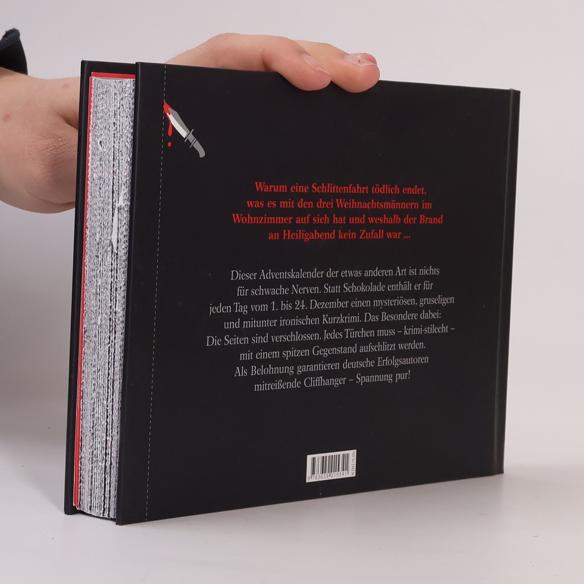 Die tägliche Krimidosis für eine verbrecherisch spannende Vorweihnachtszeit Sie sollte die besinnlichste Zeit des Jahres werden, stattdessen bedeutet die Vorweihnachtszeit für viele heutzutage einfach nur Stress. Für alle, die Gefahr laufen, diesen an unschuldigen Sternensingern auszulassen, kommt hier eine andere Möglichkeit, der inneren Anspannung Abhilfe zu schaffen: Der Krimi-Adventskalender zum Aufschlitzen verkürzt das Warten auf Weihnachten in originellem Format. Die Geschichten verstecken sich zwischen zusammengefassten Seiten. Erst das tägliche Aufschlitzen der Doppelseiten ermöglicht, sich Cliffhanger für Cliffhanger bis Weihnachten durchzuschmökern. Bekannte Spannungsautorinnen und -autoren sowie erfrischende Newcomer sind mit bitterbösen, aber auch nachdenklich stimmenden und ironischen Kurzkrimis vertreten. Spannung ist in jedem Fall garantiert - vom 1. bis zum 24. Dezember sorgen tägliche Wendungen und Plottwist für eine blutige Variante der besinnlichen Jahreszeit. Origineller Adventskalender mit fesselnden Kurzkrimis Geschrieben von bekannten Spannungsautorinnen und - autoren wie z.B. Harry Kämmerer, Tatjana Kruse und Jean Bagnol Mit jeder Seite zum Aufschlitzen wächst die Vorfreude auf Weihnachten