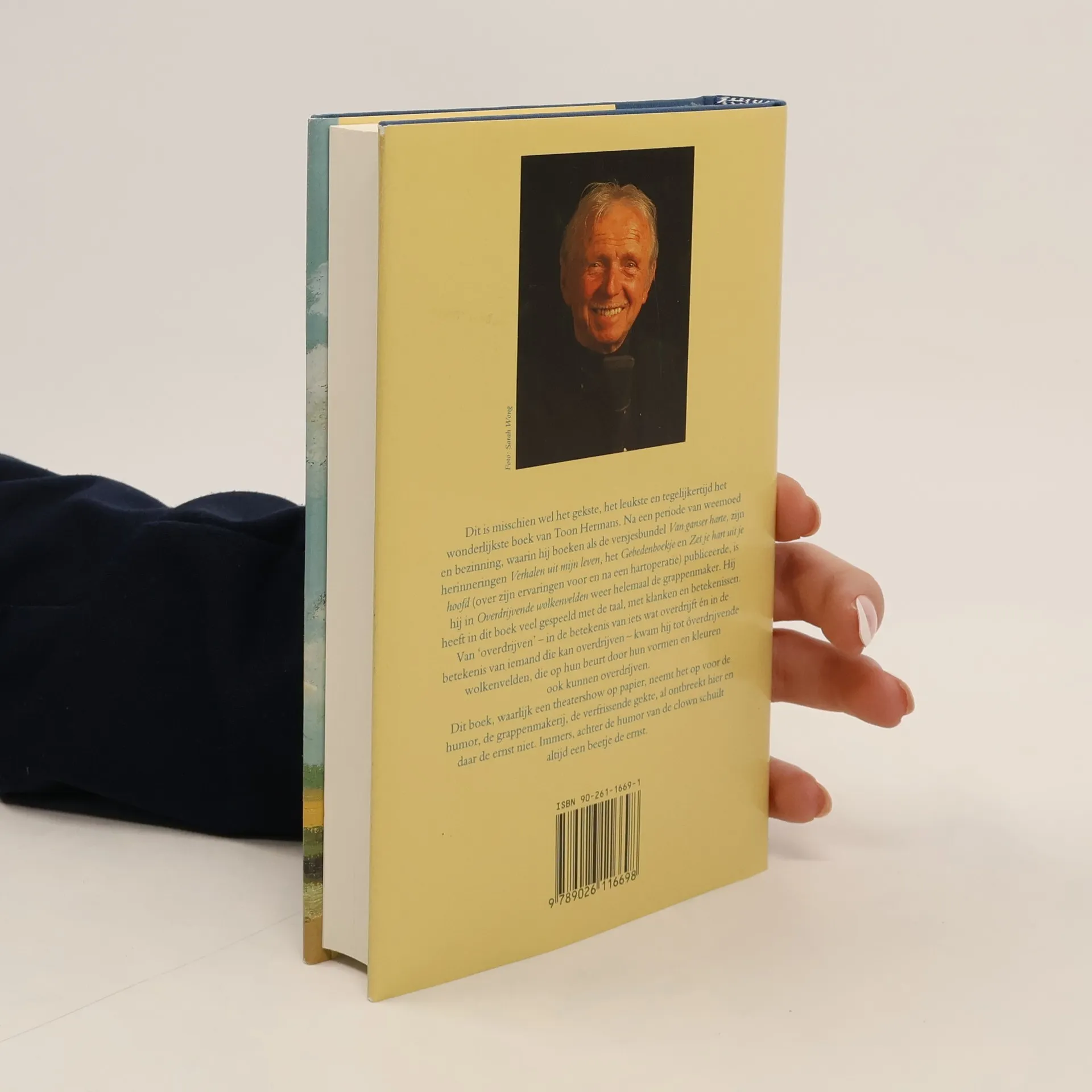 Dit is misschien wel het gekste, het leukste en tegelijkertijd het mooiste boek van Toon Hermans. Na een periode van weemoed en bezinning, waarin hij boeken als de versjesbundel Van Ganser Harte, zijn herinneringen Verhalen uit mijn Leven, het Gebedenboekje en Zet je Hart uit je Hoofd (over zijn ervaringen voor en na een hartoperatie) publiceerde, is hij nu, in Overdrijvende Wolkenvelden, weer helemaal de grappenmaker. Hij heeft in dit boek veel gespeeld met de taal, met klanken en betekenissen. Van 'overdrijven' - in de betekenis van iets wat overdrijft èn in de betekenis van iemand die kan overdrijven - kwam hij tot óverdrijvende wolkenvelden, die op hun beurt door hun vormen en kleuren ook kunnen overdrijven.Dit boek, waarlijk een theatershow op papier, neemt het op voor de humor, de grappenmakerij, de verfrissende gekte, al ontbreekt hier en daar de ernst niet. Immers, achter de humor van de clown schuilt altijd een beetje de ernst.