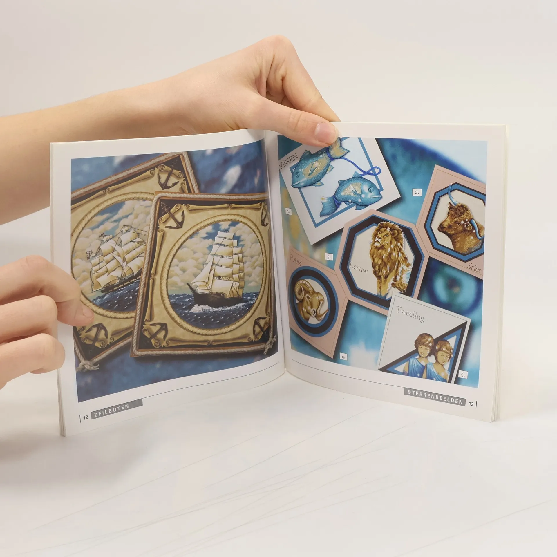 Ideeën voor het decoreren van wenskaarten met uit textiel geknipte motieven.