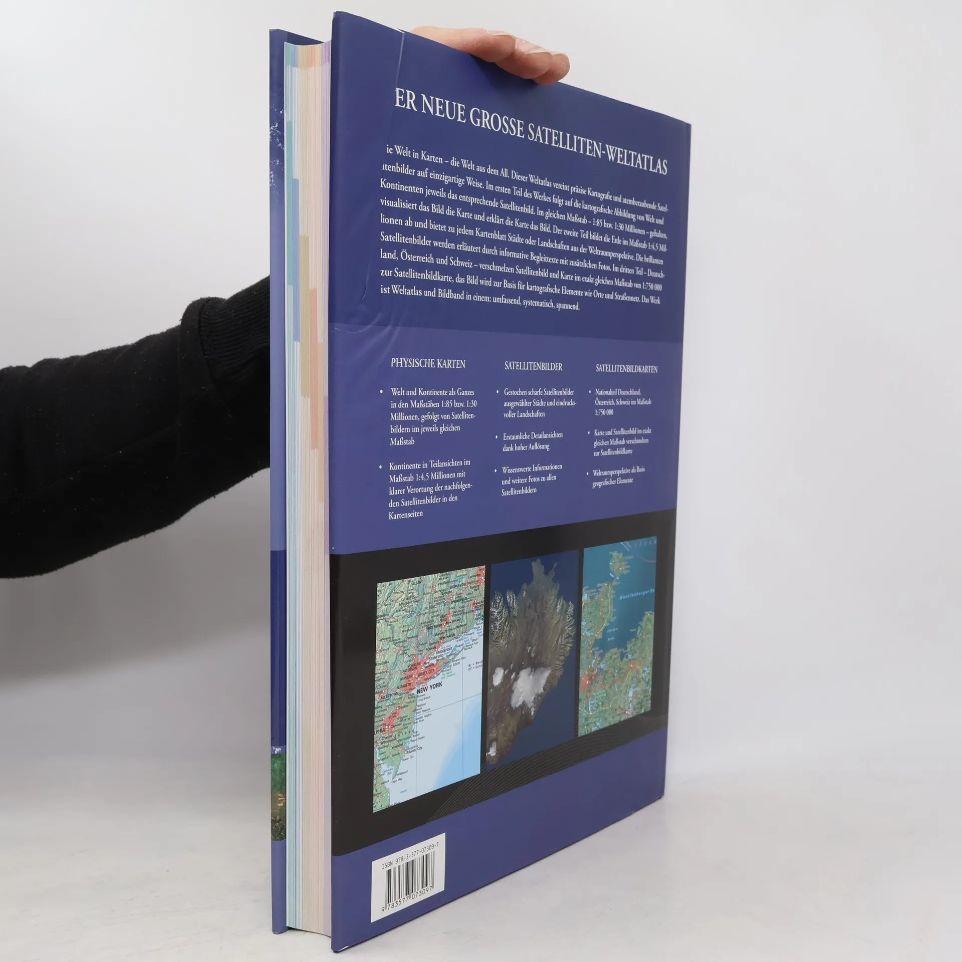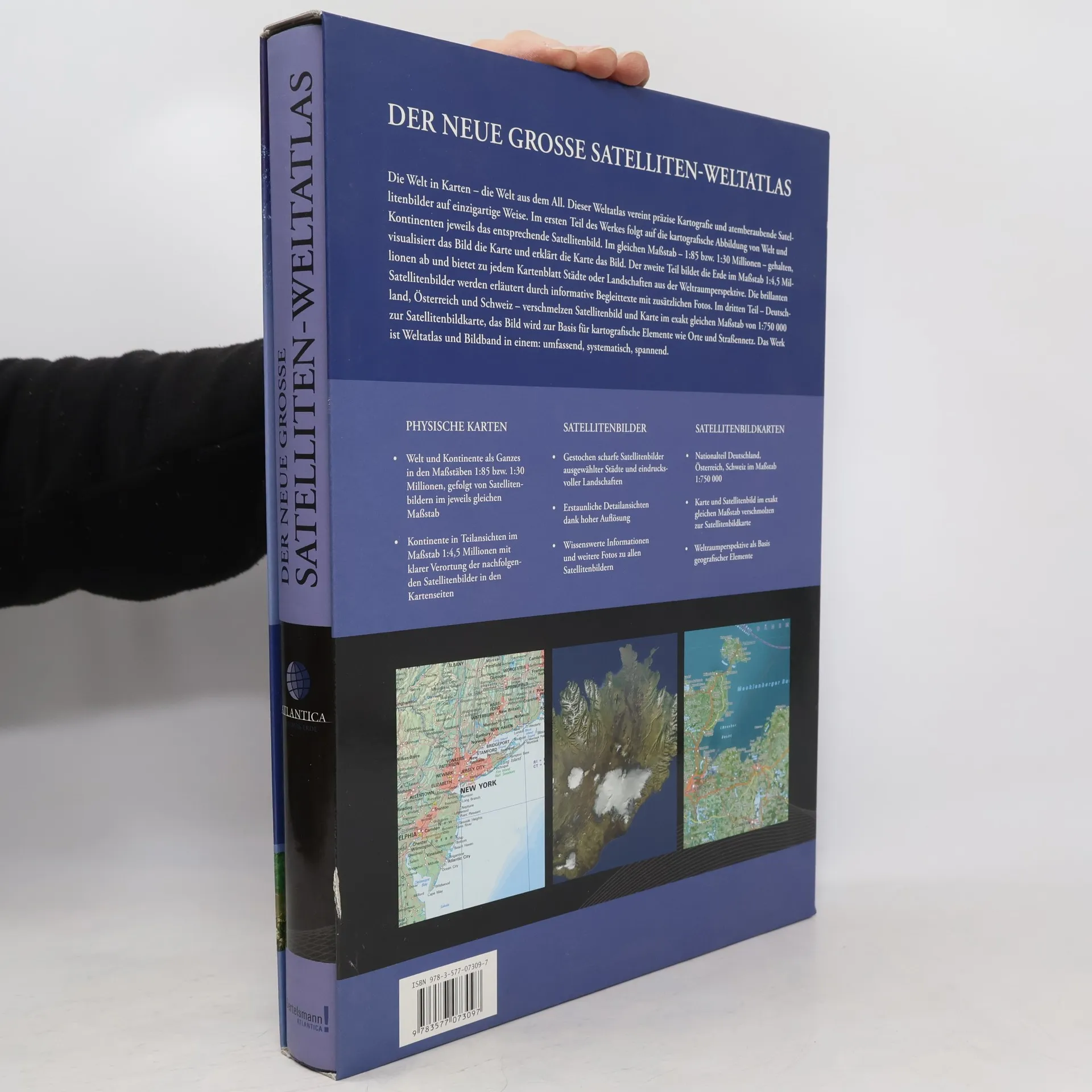 Das Standardwerk unter den Satellitenatlanten verbindet detaillierte Weltkartografie mit hochauflösenden Satellitenfotos. In der neuen Ausgabe wurde das Kartenwerk aufwendig aktualisiert und zahlreiche Satellitenbilder wurden durch aktuelle Aufnahmen ersetzt. Völlig neu sind die mit kartografischen Elementen wie Straßennetz, Siedlungsnamen und Grenzen ergänzten Satellitenbilder im Nationalteil „Deutschland, Österreich, Schweiz“. Ein besonderer Service für ungeübte Betrachter von Satellitenbildern, denen so eine schnellere Orientierung möglich wird. Modernstes Kartenwerk, innovatives Bildmaterial und eine hochwertige Ausstattung machen dieses Buch zum State-of-the-Art-Atlas.