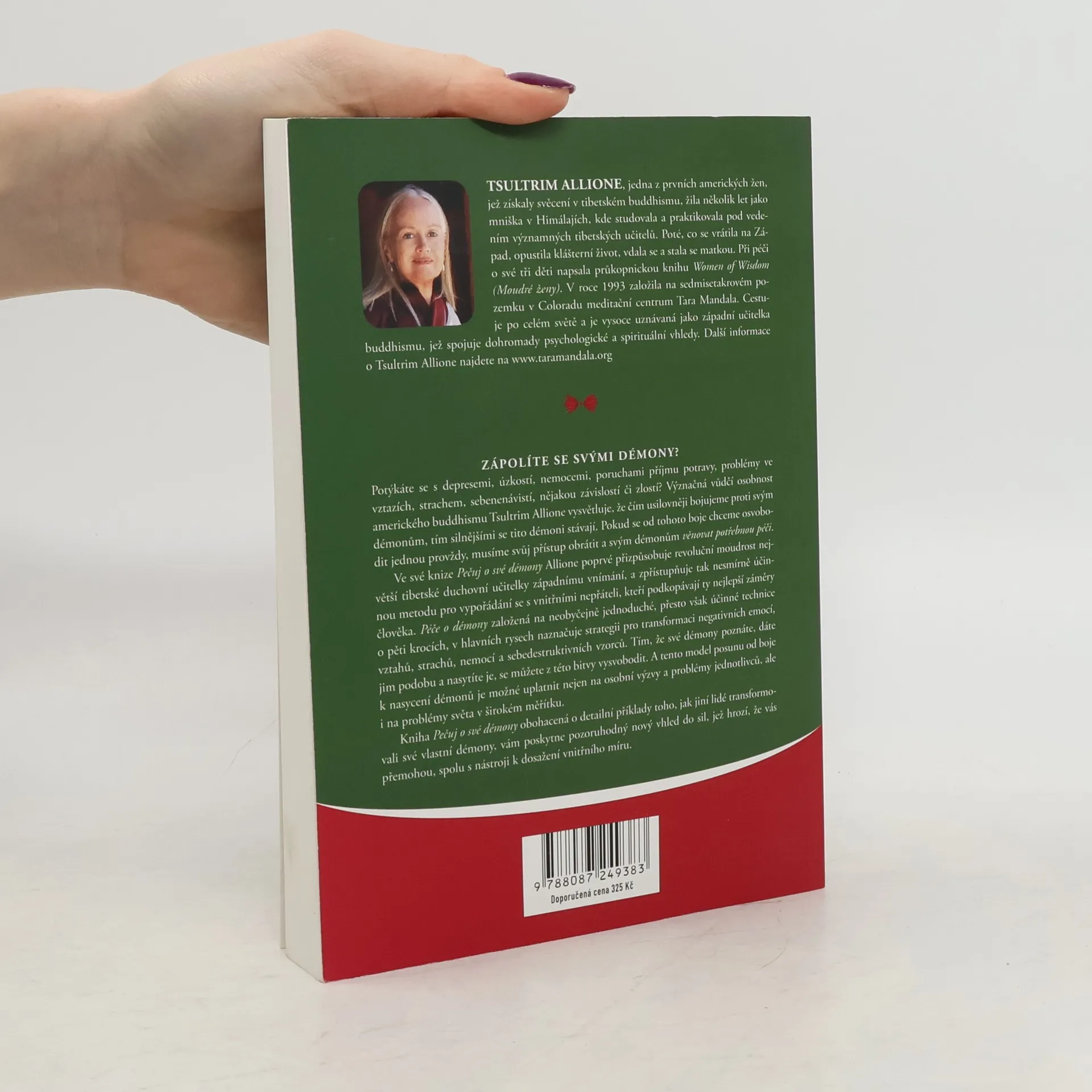Význačná vůdčí osobnost amerického buddhismu Tsulrim Allione vysvětluje, že čím usilovněji bojujeme proti svým démonům, tím silnějšími se tito démoni stávají. Pokud se od tohoto boje chceme osvobodit jednou provždy, musíme svůj přístup obrátit a svým démonům věnovat potřebnou péči. Autorka v knize poprvé přizpůsobuje revoluční moudrost největší tibetské duchovní učitelky západnímu vnímání, a zpřístupňuje tak nesmírně účinnou metodu pro vypořádání se s vnitřními nepřáteli, kteří podkopávají ty nejlepší záměry člověka. Péče o démony založená na neobyčejně jednoduché, přesto však účinné technice o pěti krocích, v hlavních rysech naznačuje strategii pro transformaci negativních emocí, vztahů, strachů, nemocí a sebedestruktivních vzorců. Tím, že své démony poznáte, dáte jim podobu a nasytíte je, se můžete z této bitvy vysvobodit. A tento model posunu od boje k nasycení démonů je možné uplatnit nejen na osobní výzvy a problémy jednotlivců, ale i na problémy světa v širokém měřítku. Kniha Pečuj o své démony obohacená o detailní příklady toho, jak jiní lidé transformovali své vlastní démony, vám poskytne pozoruhodný nový vhled do sil, jež hrozí, že vás přemohou, spolu s nástroji k dosažení vnitřního míru.
