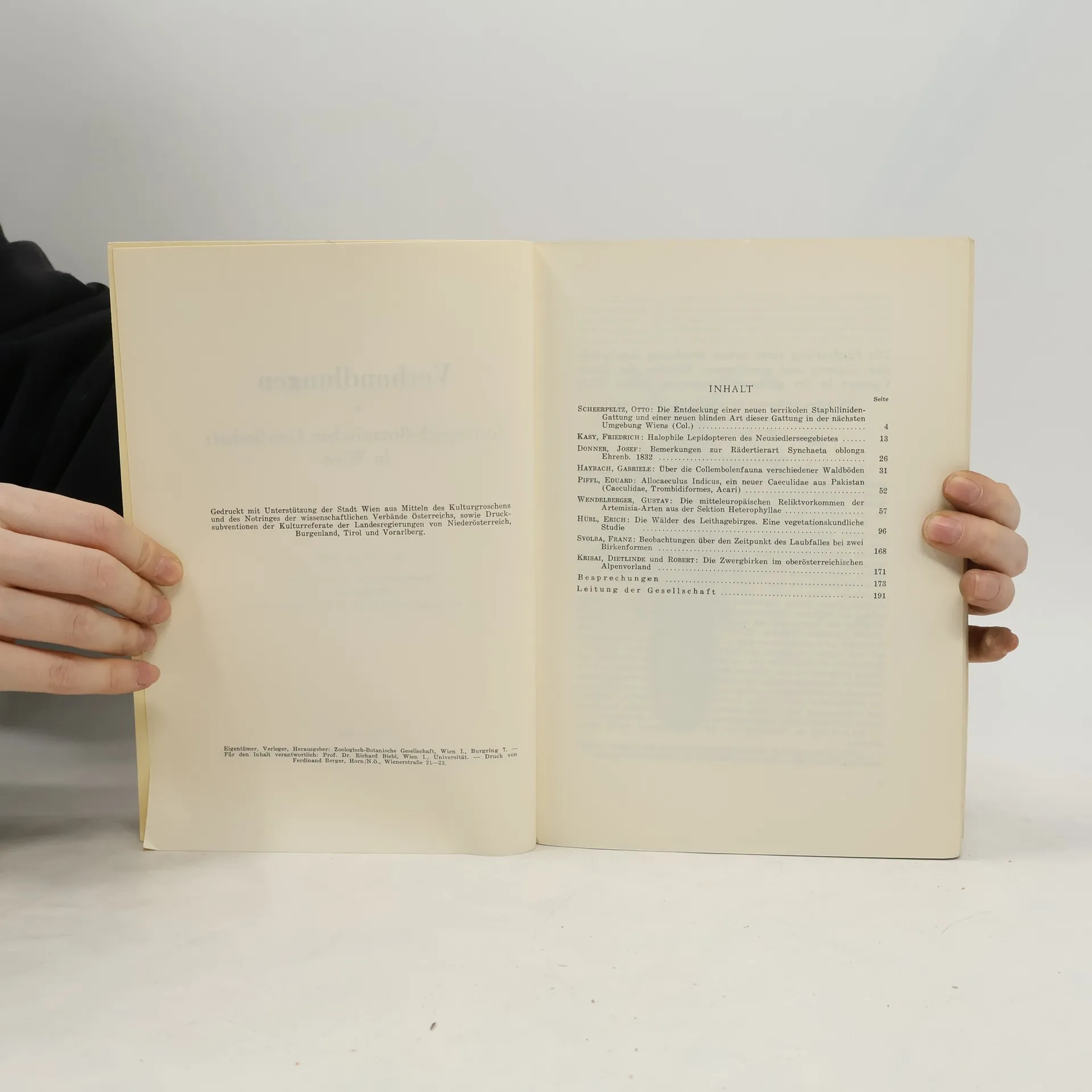 Verhandlungen der Zoologisch Botanischen Gesellschaft in Wien. Band 98 und 99, Autorenkollektiv