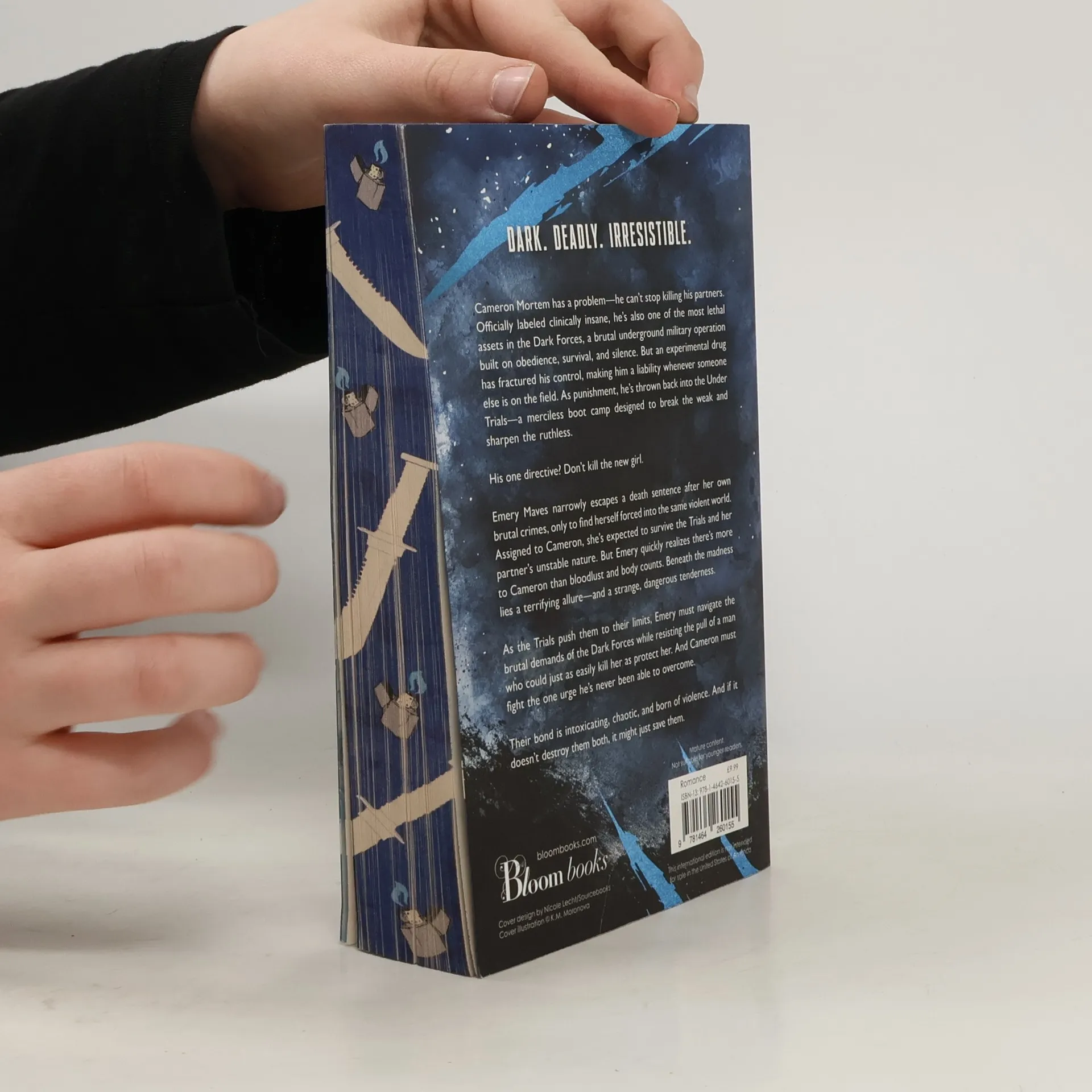 From USA Today Bestselling author KM Moronova comes a compelling and addictive dark romance set in the Dark Forces world. Cameron Mortem, officially labeled clinically insane, is one of the most lethal assets in a brutal underground military operation. However, an experimental drug has fractured his control, making him a liability in the field. As punishment, he is sent back to the Under Trials, a merciless boot camp with one directive: don’t kill the new girl. Emery Maves narrowly escapes a death sentence after her own brutal crimes, only to be thrust into the same violent world. Assigned to Cameron, she must survive both the Trials and her partner's unstable nature. Yet, she soon discovers there’s more to Cameron than just bloodlust; beneath his madness lies a terrifying allure and a strange tenderness. As the Trials push them to their limits, Emery must navigate the brutal demands of the Dark Forces while resisting the pull of a man who could easily kill her or protect her. Their bond is intoxicating and chaotic, forged in violence. If it doesn’t destroy them both, it might just save them. Praised for her previous work, Moronova's storytelling is raw and haunting, featuring flawed characters that readers can't help but fall for.