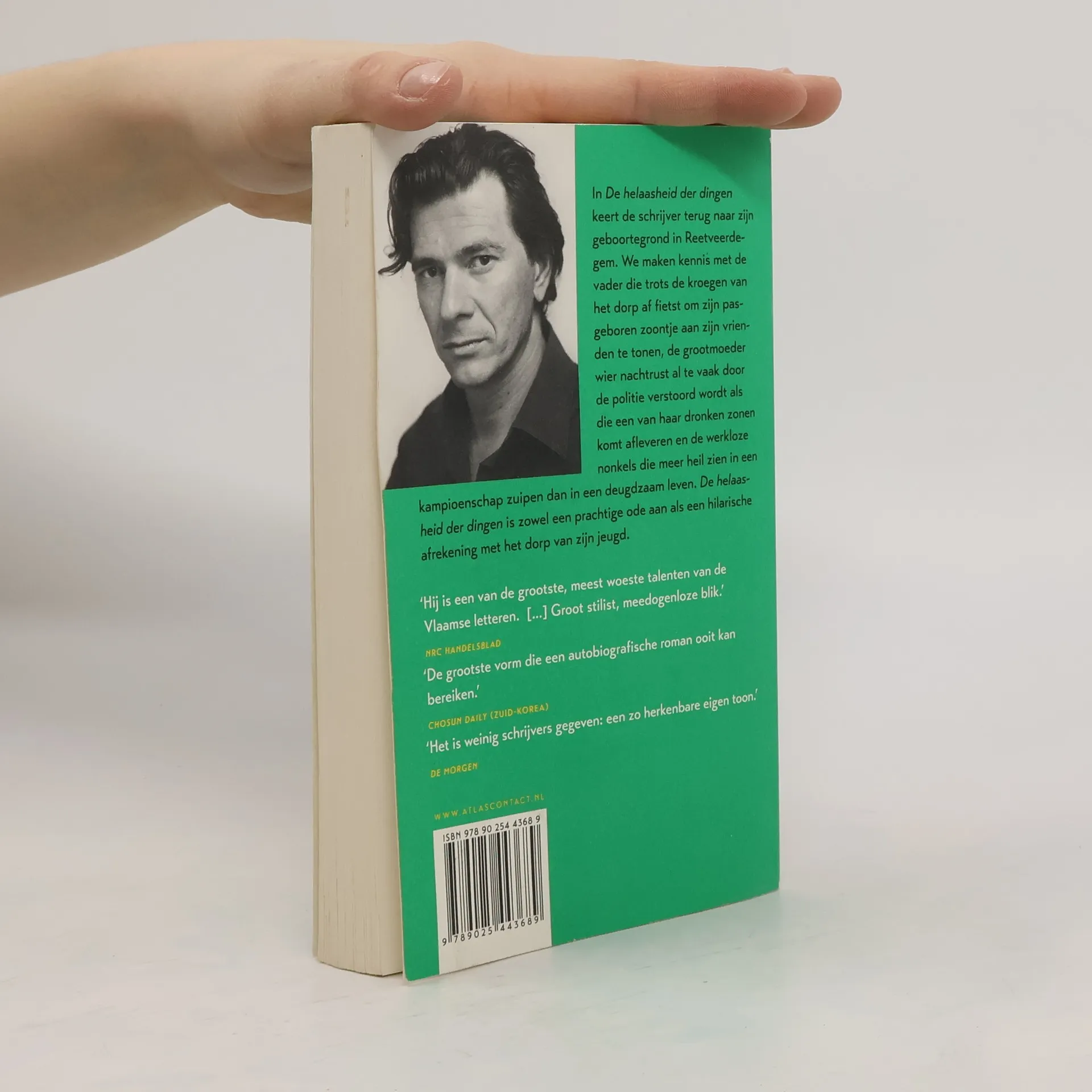 In De helaasheid der dingen keert de schrijver terug naar zijn geboortegrond in Reetveerdegem. We maken kennis met de vader die trots de kroegen van het dorp af fietst om zijn pasgeboren zoontje aan zijn vrienden te tonen, de grootmoeder wier nachtrust al te vaak door de politie verstoord wordt als die een van haar dronken zonen komt afleveren en de werkloze nonkels die meer heil zien in een kampioenschap zuipen dan in een duigdzaam leven. De helaasheid der dingen is zowel een prachtige ode aan als een hilarische afrekening met het dorp van zijn jeugd.
