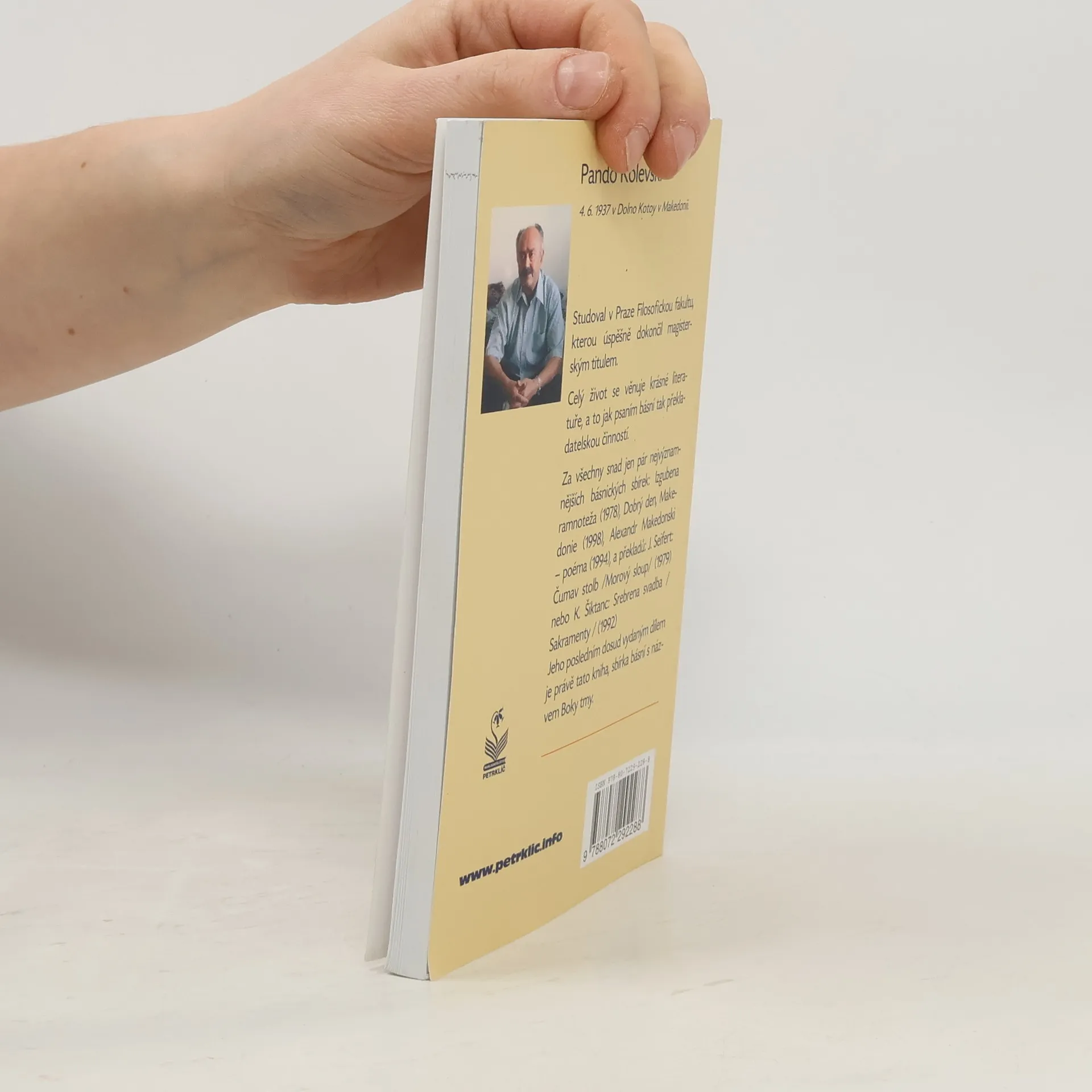 Autor Pando Kolevski studoval v Praze Filosofickou fakultu, kterou úspěšně dokončil magisterským titulem. Celý život se věnuje krásné literatuře a to jak básnické tvorbě, tak překladatelské činnosti. Jeho poslední kniha Boky tmy je o kráse a lásce v tom nejširším slova smyslu.