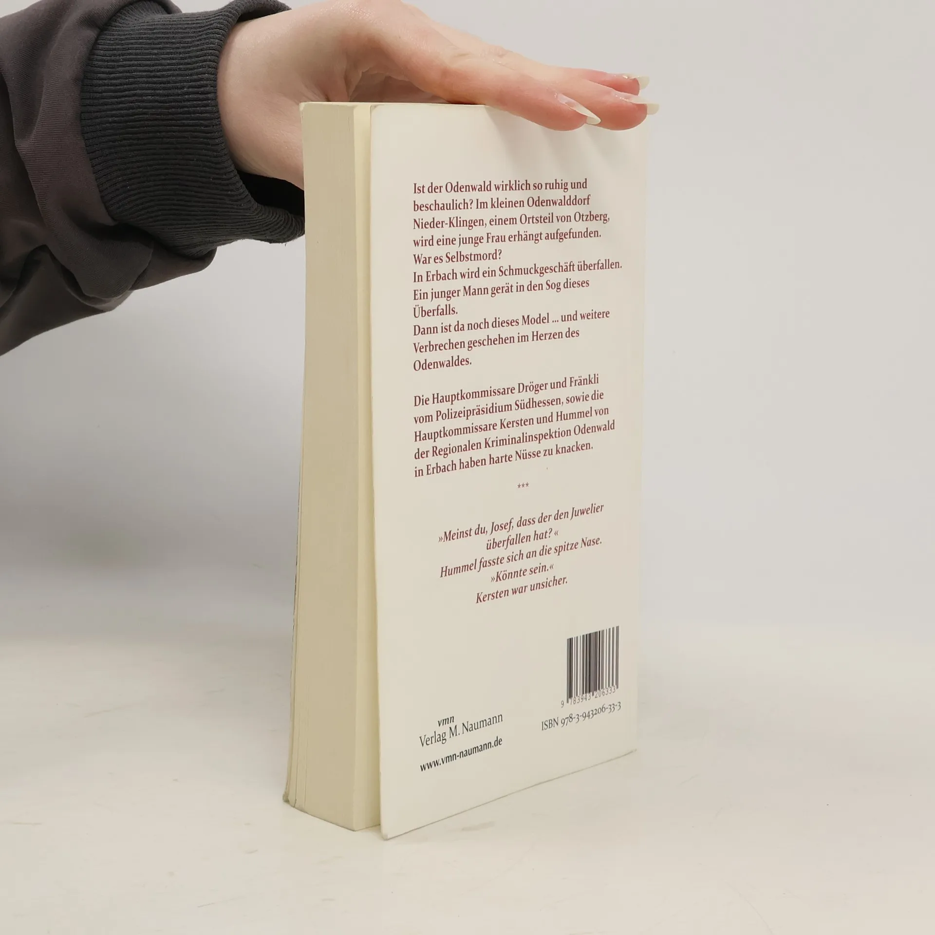 Ist der Odenwald wirklich so ruhig und beschaulich? Im kleinen Odenwalddorf Nieder-Klingen, einem Ortsteil von Otzberg, wird eine junge Frau erhängt aufgefunden. War es Selbstmord? In Erbach wird ein Schmuckgeschäft überfallen. Ein junger Mann gerät in den Sog dieses Überfalls. Dann ist da noch dieses Model … und weitere Verbrechen geschehen im Herzen des Odenwaldes. Die Hauptkommissare Dröger und Fränkli vom Polizeipräsidium Südhessen, sowie die Hauptkommissare Kersten und Hummel von der Regionalen Kriminalinspektion Odenwald in Erbach haben harte Nüsse zu knacken. Nach dem großen Erfolg von Im Schatten der Veste und Blutroter Spätburgunder bereits der dritte spannende Odenwald-Krimi aus der Feder von Willi Schissler. Der Autor: Willi Schissler wurde 1949 im Otzberger Ortsteil Nieder-Klingen im Odenwald geboren und wohnt seitdem dort. Nach einer Lehre und einer aktiven Zeit als Bankkaufmann wechselte er 1970 zu einem Institut für Marktforschung in Frankfurt/Main. Er ist verheiratet und hat eine erwachsene Tochter.