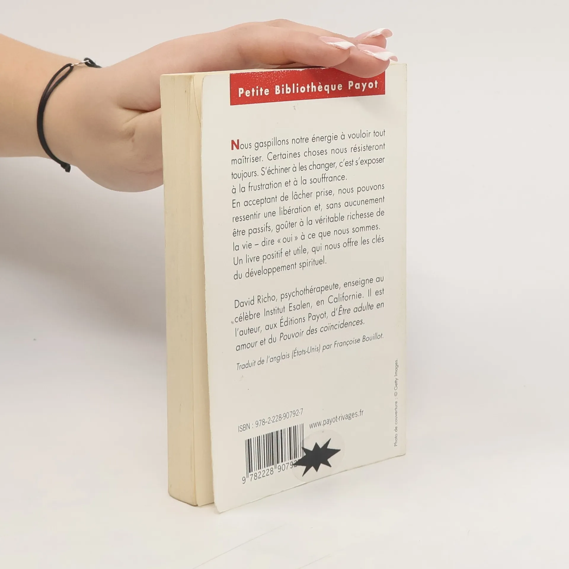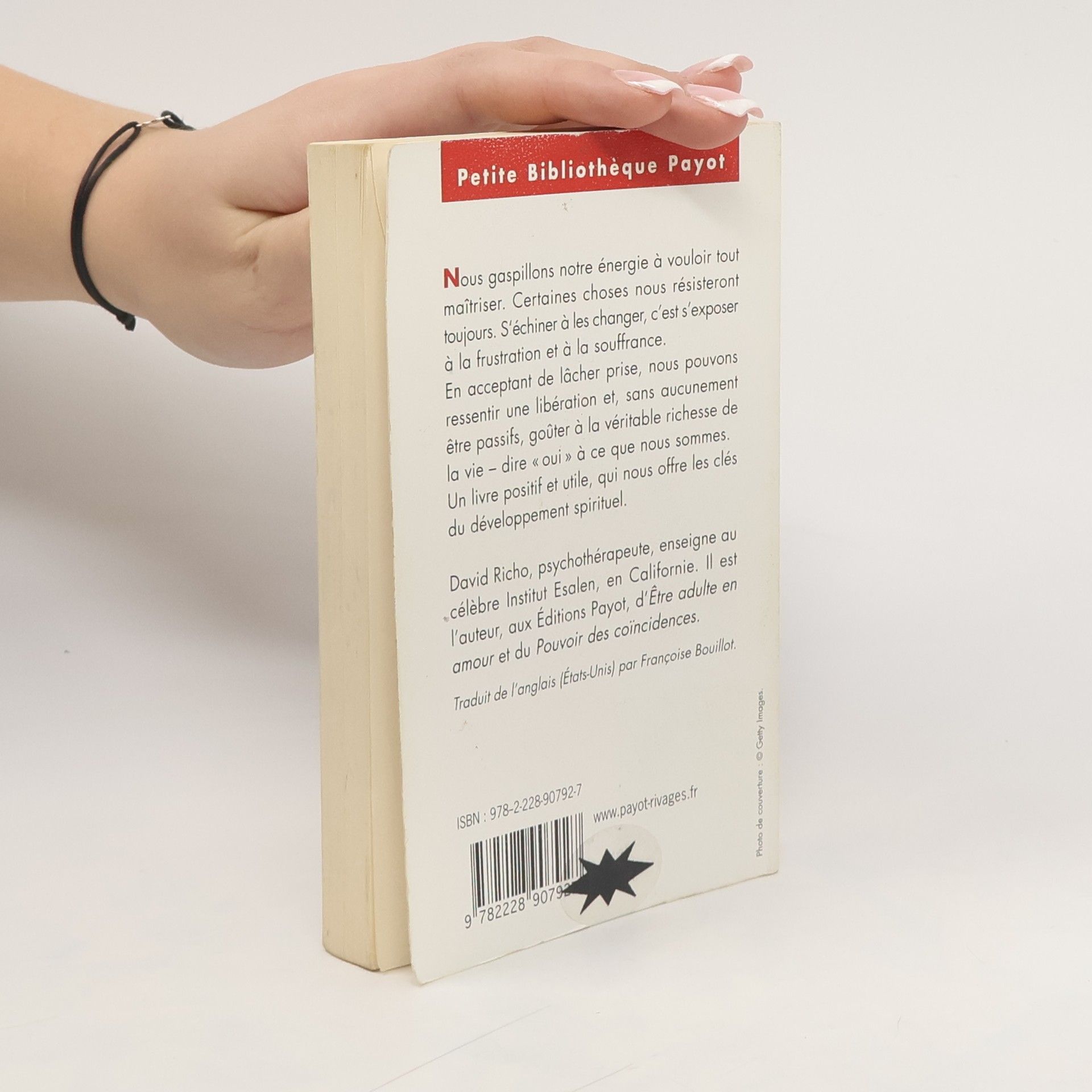 Nous gaspillons trop d'énergie à essayer de changer ce qui ne peut pas l'être. Or il existe cinq « données » de la vie qu'il ne sert à rien de vouloir maîtriser : tout change et a une fin ; les choses ne se passent pas toujours comme on l'avait prévu ; la vie n'est pas toujours juste ; la souffrance fait partie de la vie ; les gens ne sont pas toujours loyaux et aimants. En acceptant de lâcher prise, de ne plus résister inutilement à ces faits immuables, mais au contraire de s'ouvrir à eux, il est possible de ressentir une libération et, sans aucunement être passif, de goûter enfin aux vrais plaisirs, à la véritable richesse de la vie, de dire « oui » à ce que l'on est.Un livre extrêmement utile, où David Richo, psychothérapeute, s'appuyant sur trente ans d'expérience et nombre d'exercices pratiques, nous offre les clés du développement spirituel.