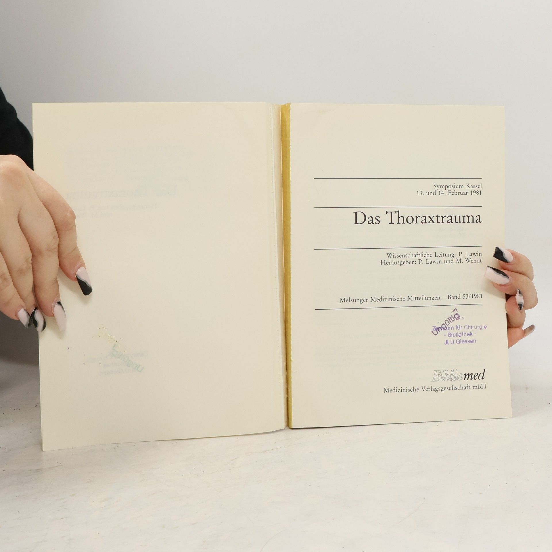Melsunger Medizinische Mitteilungen - 53: Das Thoraxtrauma, Peter Lawin, M. Wendt