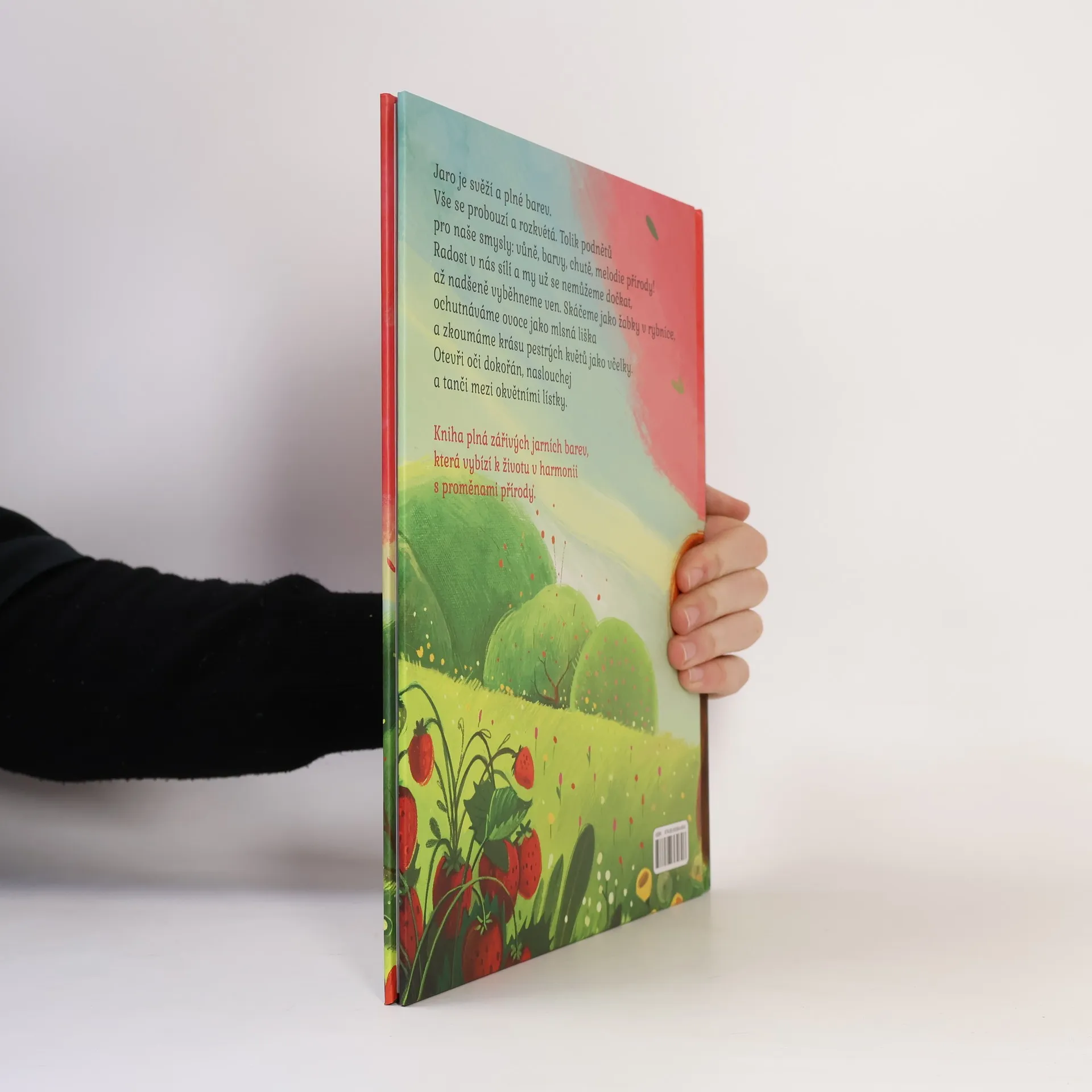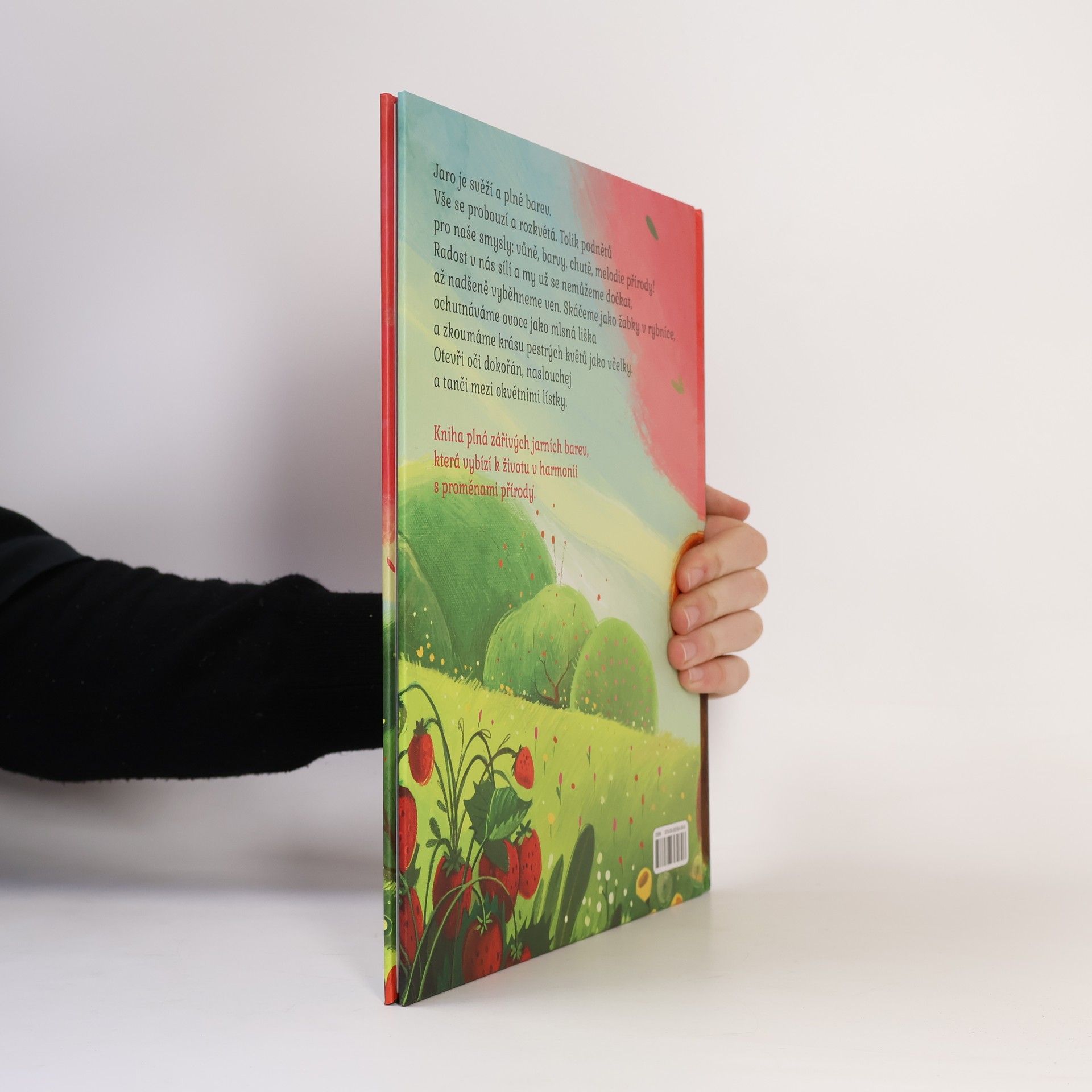 Jaro je svěží a plné barev. Vše se probouzí a rozkvétá. Tolik podnětů pro naše smysly: vůně, barvy, chutě, melodie přírody! Radost v nás sílí a my už se nemůžeme dočkat, až nadšeně vyběhneme ven. Skáčeme jako žabky v rybníce, ochutnáváme ovoce jako mlsná liška a zkoumáme krásu pestrých květů jako včelky. Otevři oči dokořán, naslouchej a tanči mezi okvětními lístky. Kniha plná zářivých jarních barev, která vybízí k životu v harmonii s proměnami přírody.