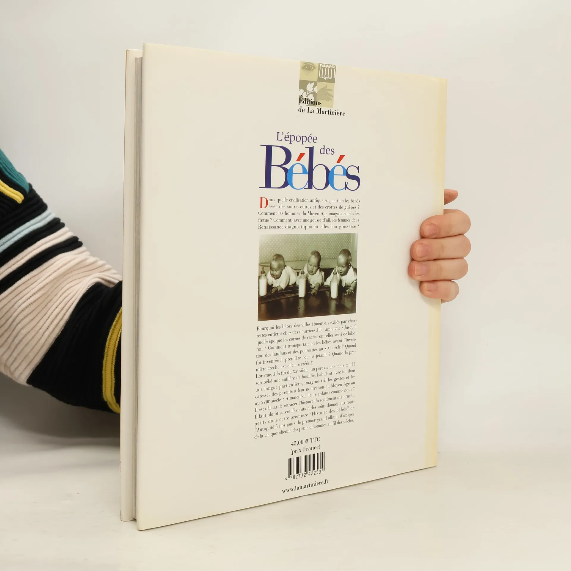 Dans quelle civilisation antique soignait-on les bébés avec des souris cuites et des crottes de guêpes ? Comment les hommes du Moyen Age imaginaient-ils les fœtus ? Comment, avec une gousse d'ail, les femmes de la Renaissance diagnostiquaient-elles leur grossesse ? Pourquoi les bébés des villes étaient-ils exilés par charrettes entières chez des nourrices à la campagne ? Jusqu'à quelle époque les cornes de vaches ont-elles servi de biberon ? Comment transportait-on les bébés avant l'invention des landaus et des poussettes au XIXe siècle ? Quand fut inventée la première couche jetable ? Quand la première crèche a-t-elle été créée ? Lorsqu'à la fin du XXe siècle, un père ou une mère tend à son bébé une cuillère de bouillie, babillant avec lui dans une langue particulière, imagine-t-il les gestes et les caresses des parents à leur nourrisson au Moyen Age ou au XVIIIe siècle ? Aimaient-ils leurs enfants comme nous ? Il est délicat de retracer l'histoire du sentiment maternel... Il faut plutôt suivre l'évolution des soins donnés aux tout-petits dans cette première " Histoire des bébés " de l'Antiquité à nos jours, le premier grand album d'images de la vie quotidienne des petits d'hommes au fil des siècles.