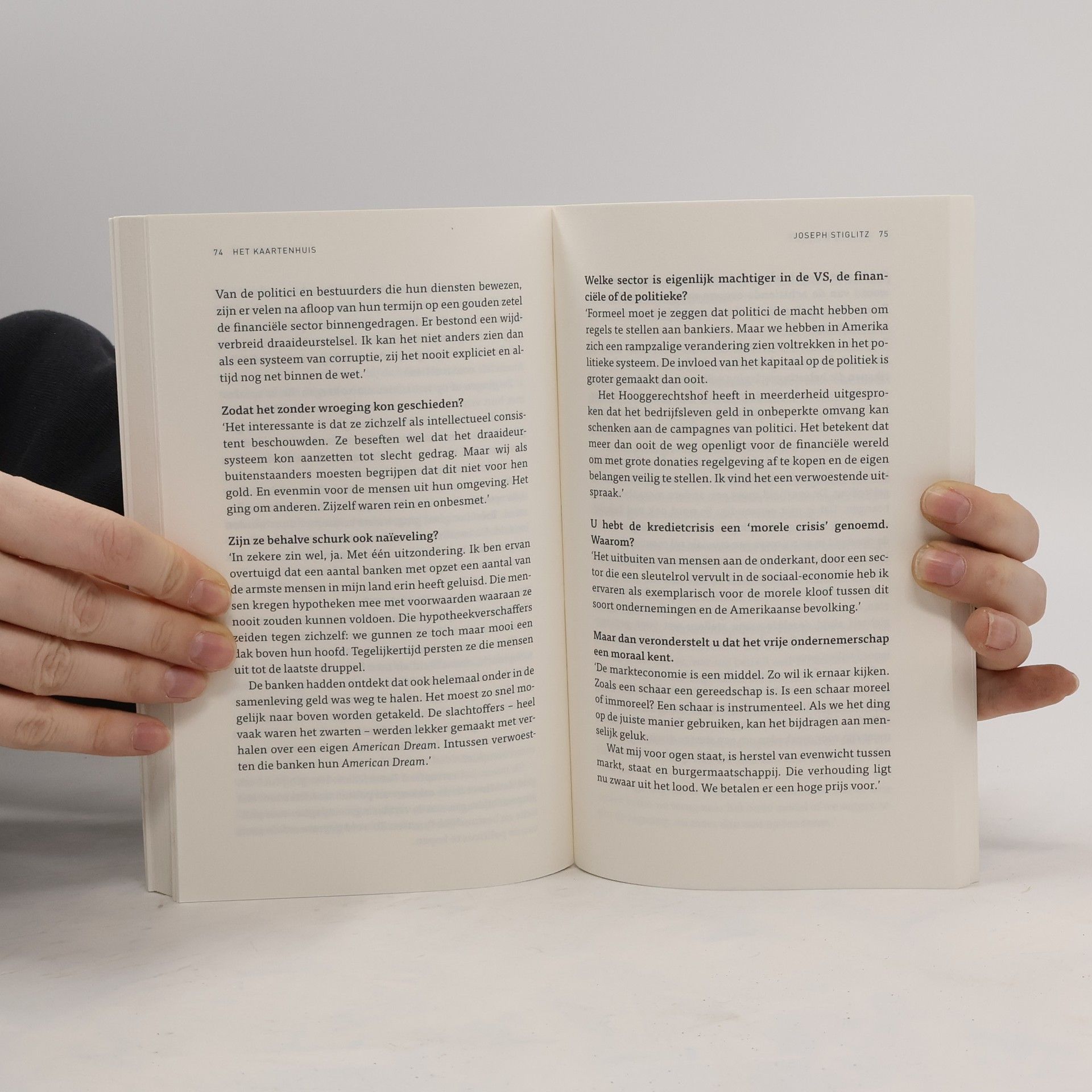 Grote namen zijn verschrompeld. Harde geldbedrijven zijn omgevallen. Het is huiveringwekkend en fascinerend. Het financiële systeem dat iedereen in het Westen welvaart bracht, schijnbaar onbegrensd en onbedreigd, en een aantal van ons rijkdom in een nooit eerder vertoonde mate, heeft zich als een veelkoppig monster tegen ons gekeerd. De werkelijkheid lijkt groter dan we kunnen beheersen en begrijpen. Het hoogtepunt van het hebben hebben we gehad. Er kome wat komt. Wat is is onzekerheid. Het is het onrustige vermoeden dat niets meer vaststaat, onze banen niet en onze pensioenen niet en al helemaal niet het lot van onze kinderen en hun toekomst. Jan Tromp schetst in zeven heldere en diepgravende vraaggesprekken de overgang naar een nieuwe, verwarrende tijd.