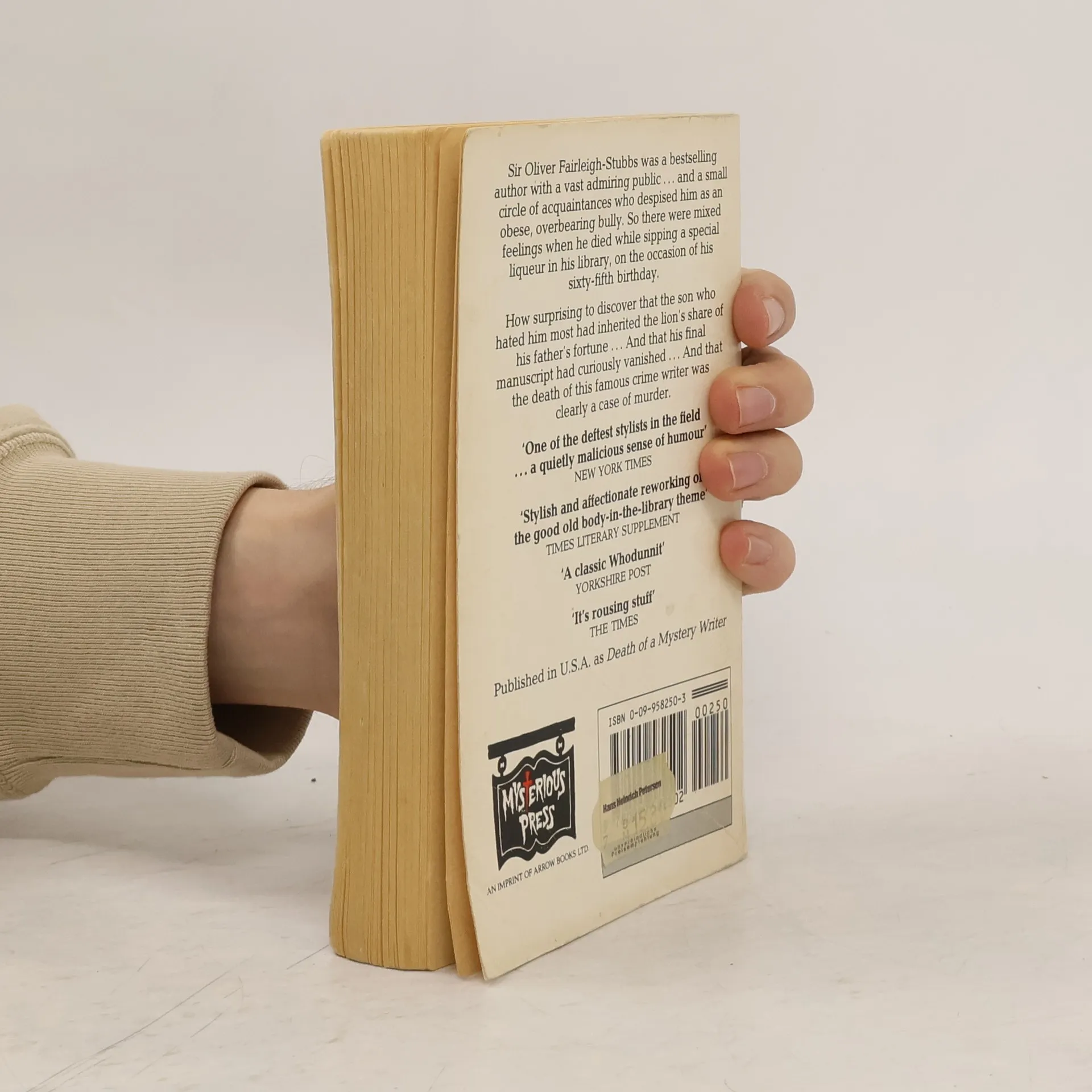 From master mystery writer Robert Barnard, one of his early novels, "Death of a Mystery Writer." First published in 1979, "Death of a Mystery Writer" received an Edgar Award nomination for "Best Novel" of that year. It's with great pleasure that Scribner reissues this beloved novel from one of the most respected names in crime writing. Sir Oliver Fairleigh-Stubbs, overweight and overbearing, collapses and dies at his birthday party while indulging his taste for rare liquors. He had promised his daughter he would be polite and charitable for the entire day, but the strain of such exemplary behavior was obviously too great. He leaves a family relieved to be rid of him, and he also leaves a fortune, earned as a bestselling mystery author. To everyone's surprise, Sir Oliver's elder son, who openly hated his father, inherits most of the estate. His wife, his daughter, and his younger son are each to receive the royalties from one carefully chosen book. But the manuscript of the unpublished volume left to Sir Oliver's wife -- a posthumous "last case" that might be worth millions -- has disappeared. And Sir Oliver's death is beginning to look less than natural. Into this bitter household comes Inspector Meredith, a spirited Welshman who in some ways resembles Sir Oliver's fictional hero. In Robert Barnard's skillful hands, Inspector Meredith's investigation becomes not only a classic example of detection but an elegant and humorous slice of crime.