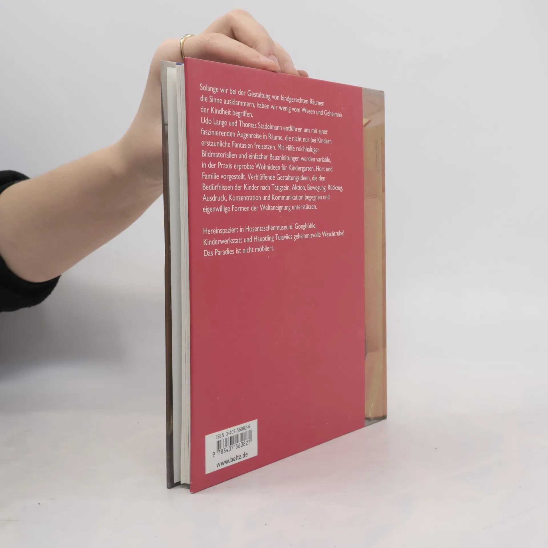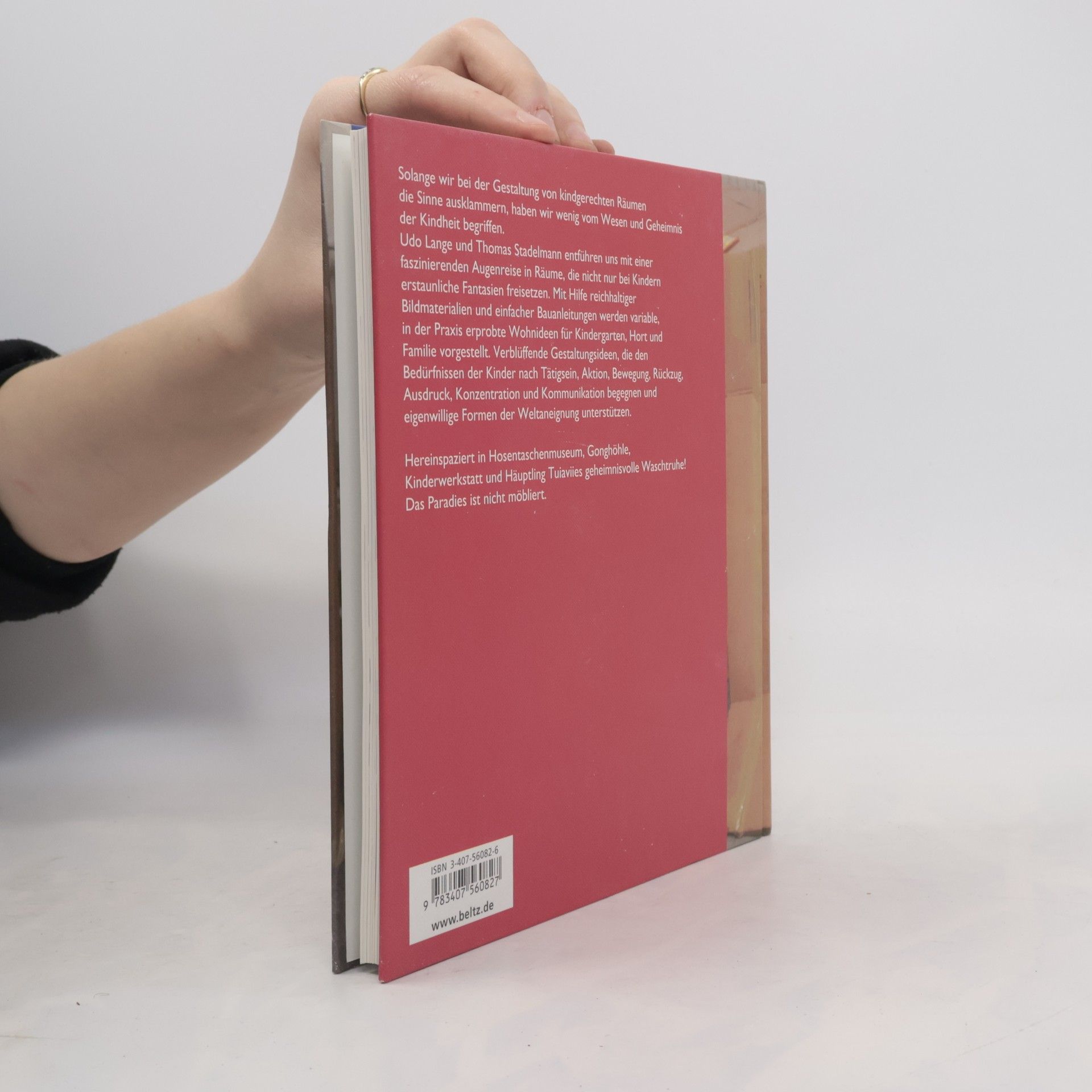Hereinspaziert in Hosentaschenmuseum, Gonghöhle, Kinderwerkstatt und Häuptling Tuiaviies geheimnisvolle Waschtruhe! Das Paradies ist nicht möbliert. Solange wir bei der Gestaltung von kindergerechten Räumen die Sinne ausklammern, haben wir wenig vom Wesen und Geheimnis der Kindheit begriffen. Udo Lange und Thomas Stadelmann entführen uns mit einer faszinierenden Augenreise in Räume, die nicht nur bei Kindern erstaunliche Fantasien freisetzen. Mit Hilfe reichhaltiger Bildmaterialien und einfacher Bauanleitungen werden variable, in der Praxis erprobte Wohnideen für Kindergarten, Hort und Familie vorgestellt. Verblüffende Gestaltungsideen, die den Bedürfnissen der Kinder nach Tätigsein, Aktion, Bewegung, Rückzug, Ausdruck, Konzentration und Kommunikation begegnen und eigenwillige Formen der Weltaneignung unterstützen.
