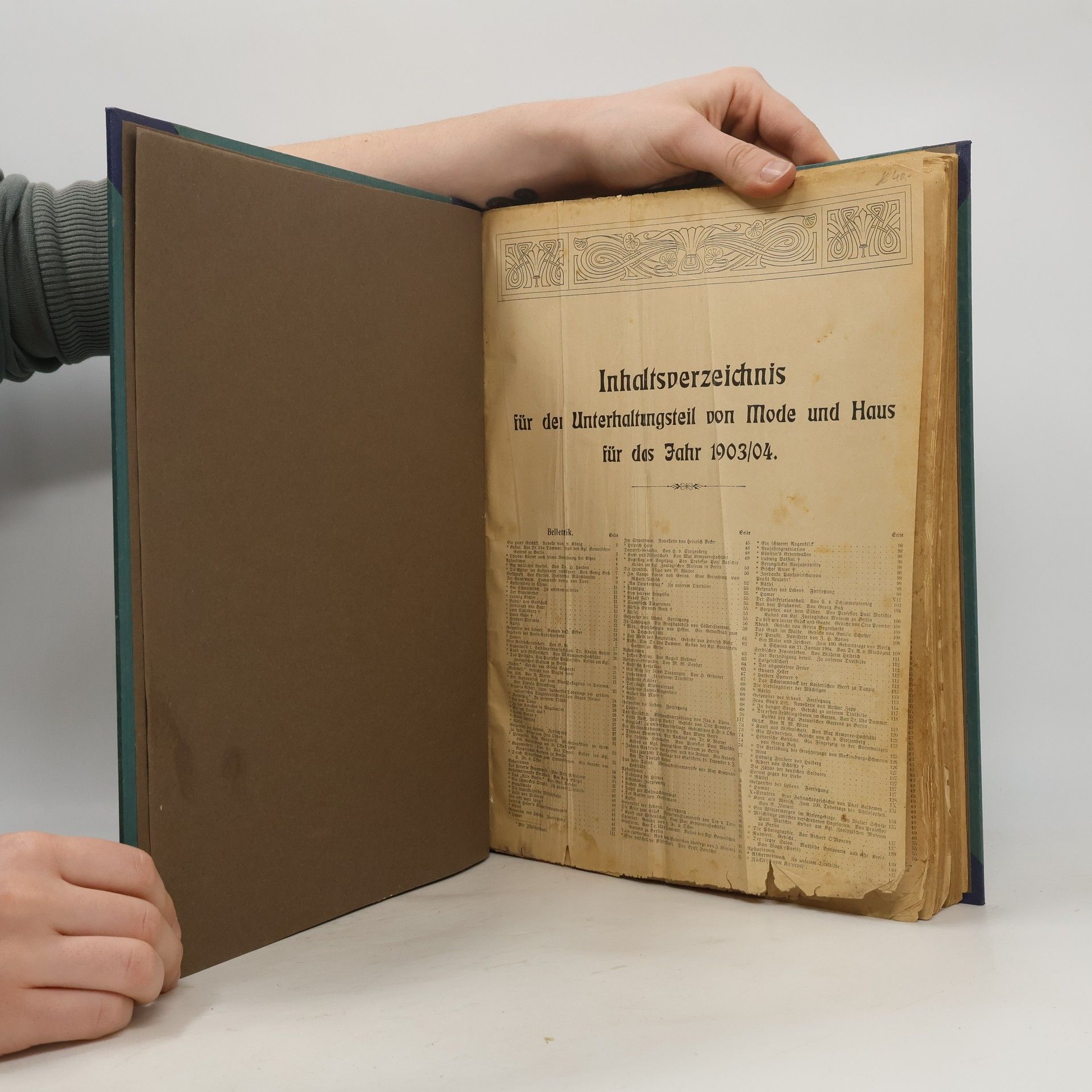 Inhaltsverzeichnis für der Unterhaltungsteil von Mode und Haus für das Jahr 1903/04, Autorenkollektiv