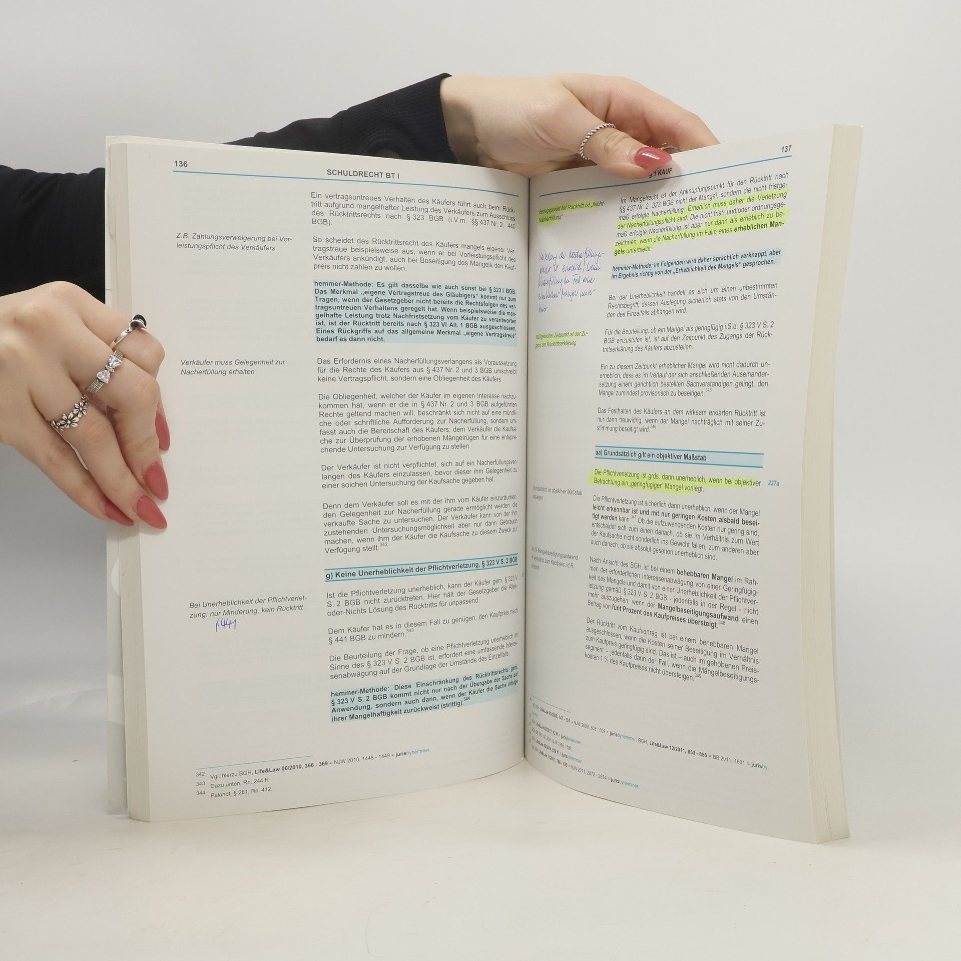 Die Mängelrechte sind besonders klausurrelevant und haben durch die Schuldrechtsreform an Bedeutung gewonnen. Neue Problemfelder wie die Nacherfüllung, Selbstvornahme und Schadensersatz müssen bekannt sein. Das Skript behandelt zentrale Fragestellungen wie den Sachmangelbegriff, Nacherfüllung, Rücktritt, Minderung und Schadensersatz sowie den Versendungs- und Verbrauchsgüterkauf. Auch das Werkvertragsrecht wird umfassend analysiert, um eine sichere Vorbereitung auf die Schuldrechtsklausur zu gewährleisten. Die Hauptskripten bieten eine detaillierte Darstellung der prüfungsrelevanten Zusammenhänge und trainieren wiederkehrende Argumentationsmuster. Sie fungieren als ideale Nachschlagewerke für Studenten vom 1. Semester bis zum 2. Staatsexamen und ersetzen das traditionelle Lehrbuch. Anders als typische Lehrbücher sind sie klausurorientiert und nutzen Beispielsfälle zur Erleichterung des Verständnisses, wodurch anspruchsvolles Prüfungswissen vermittelt wird. Die studentenfreundliche Preisgestaltung ermöglicht den Erwerb als Gesamtwerk. Die Inhalte umfassen die Pflichten des Verkäufers und Käufers gemäß § 433 I S. 1 BGB, Rechte bei Sach- und Rechtsmängeln, Besonderheiten beim Kauf unter Eigentumsvorbehalt sowie die Pflichten und Rechte im Werkvertrag und die Anwendbarkeit des Kaufrechts nach § 650 BGB.