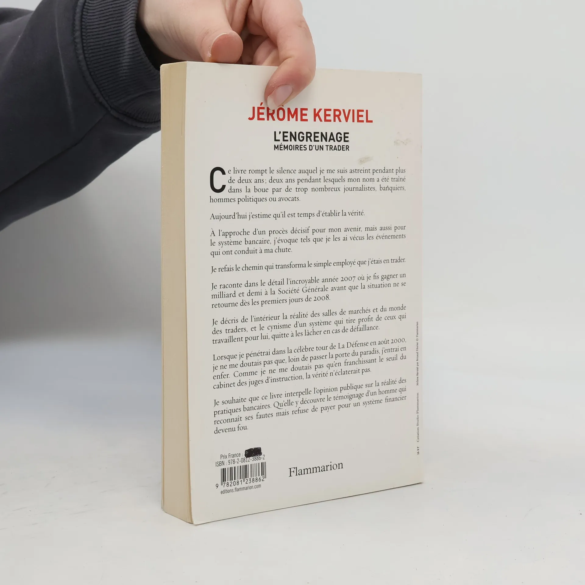 « Ce livre rompt le silence auquel je me suis astreint pendant plus de deux ans ; deux ans pendant lesquels mon nom a été traîné dans la boue par de trop nombreux journalistes, banquiers, hommes politiques ou avocats. Aujourd’hui j’estime qu’il est temps d’établir la vérité. A l’approche d’un procès décisif pour mon avenir, mais aussi pour le système bancaire, j’évoque tels que je les ai vécus les événements qui ont conduit à ma chute. Je refais le chemin qui transforma le simple employé que j’étais en trader. Je raconte dans le détail l’incroyable année 2007 où je fis gagner un milliard et demi à la Société Générale avant que la situation ne se retourne dès les premiers jours de 2008. Je décris de l’intérieur la réalité des salles de marchés et du monde des traders, et le cynisme d’un système qui tire profit de ceux qui travaillent pour lui, quitte à les lâcher en cas de défaillance. Lorsque je pénétrai dans la célèbre tour de La Défense en août 2000, je ne me doutais pas que, loin de passer la porte du paradis, j’entrais en enfer. Comme je ne me doutais pas qu’en franchissant le seuil du cabinet des juges d’instruction, la vérité n’éclaterait pas. Je souhaite que ce livre interpelle l’opinion publique sur la réalité des pratiques bancaires. Qu’elle y découvre le témoignage d’un homme qui reconnaît ses fautes mais refuse de payer pour un système financier devenu fou. » Jérôme Kerviel