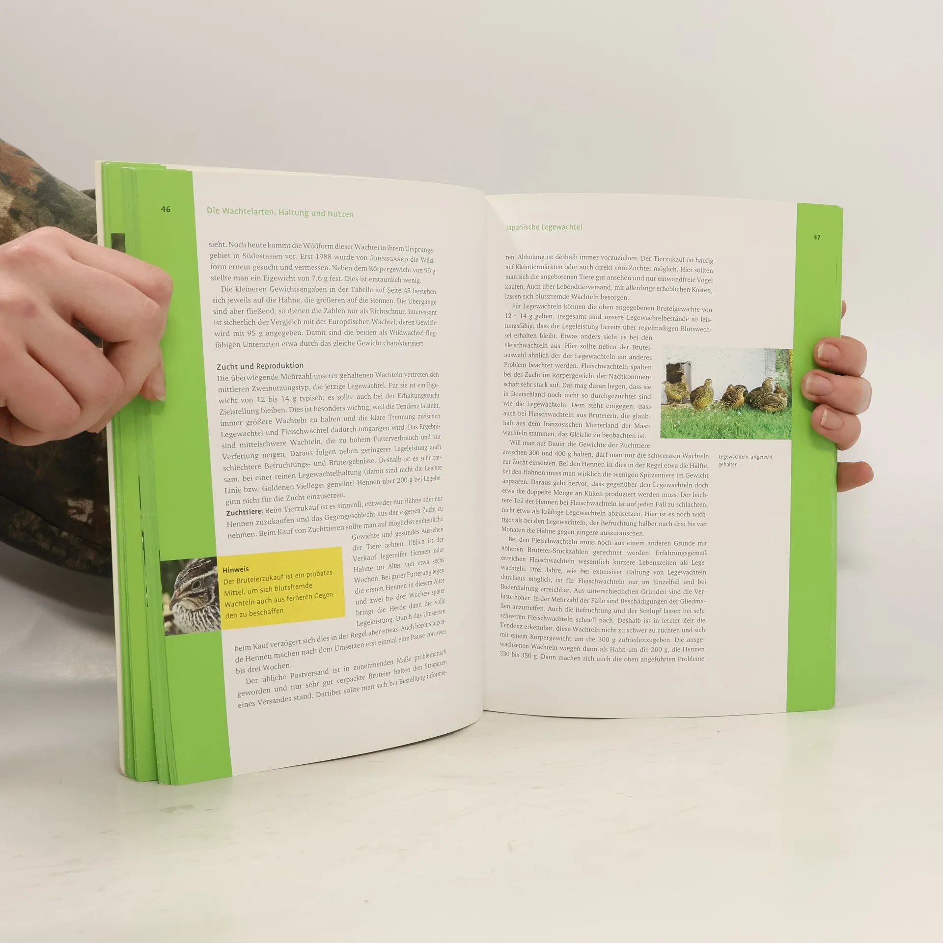 Dieses Buch bietet eine Fülle an praxisbezogenen Informationen zur Wachtelhaltung, von den Vorüberlegungen, dem Bau der artgerechten Voliere, der Wahl der geeigneten Wachtelarten, ihrem Verhalten, ihrer Versorgung, Pflege und Zucht. Porträts der verschiedenen Zierwachtelarten: Chinesische Zwergwachtel. Japanische Legewachtel, Europäische Wachtel, Harlekinwachtel, die Virginiawachteln Straußwachtel, Schopfwachtel und Montezumawachtel, mit Daten zur Herkunft und Biologie sowie Besonderheiten bei der Haltung geben einen Überblick. Wer sich für die Haltung von Wachteln interessiert, ob zum Freizeitvergnügen, zur Eier- und Fleischgewinnung in kleinem Rahmen für den für den Eigenbedarf oder für die Farbzucht und Ausstellung, findet in diesem Handbuch für jeden dieser Bereiche hilfreiche Beschreibungen und Anleitungen, die sich in der langjährigen Erfahrung der Autoren bewährt haben.