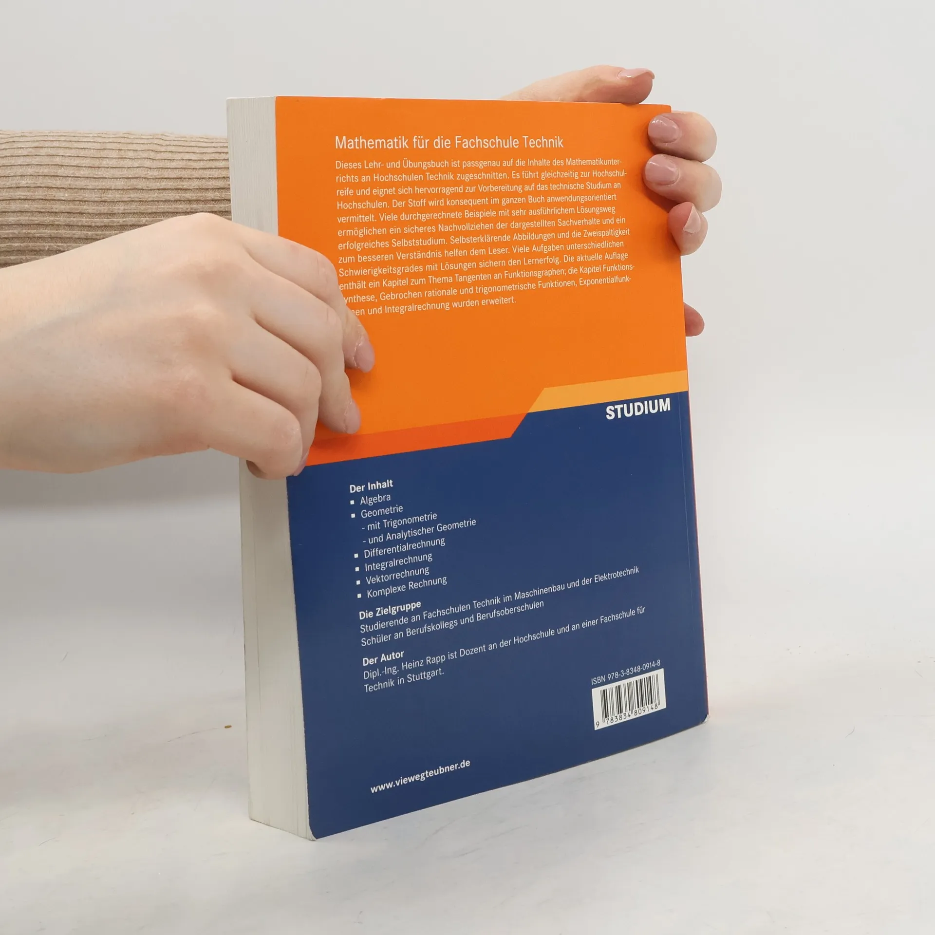 Dieses Lehr- und Übungsbuch ist passgenau auf die Inhalte des Mathematikunterrichts an Fachschulen Technik zugeschnitten. Es führt gleichzeitig zur Hochschulreife und eignet sich hervorragend zur Vorbereitung auf das technische Studium an Hochschulen. Der Stoff wird konsequent im ganzen Buch anwendungsorientiert vermittelt. Viele durchgerechnete Beispiele mit sehr ausführlichem Lösungsweg ermöglichen ein sicheres Nachvollziehen der dargestellten Sachverhalte und ein erfolgreiches Selbststudium. Selbsterklärende Abbildungen und die Zweispaltigkeit zum besseren Verständnis helfen dem Leser. Viele Aufgaben unterschiedlichen Schwierigkeitsgrades mit Lösungen sichern den Lernerfolg. Die aktuelle Auflage enthält ein Kapitel zum Thema Tangenten an Funktionsgraphen; die Kapitel Funktionssynthese, Gebrochen rationale und trigonometrische Funktionen, Exponentialfunktionen und Integralrechnung wurden erweitert.